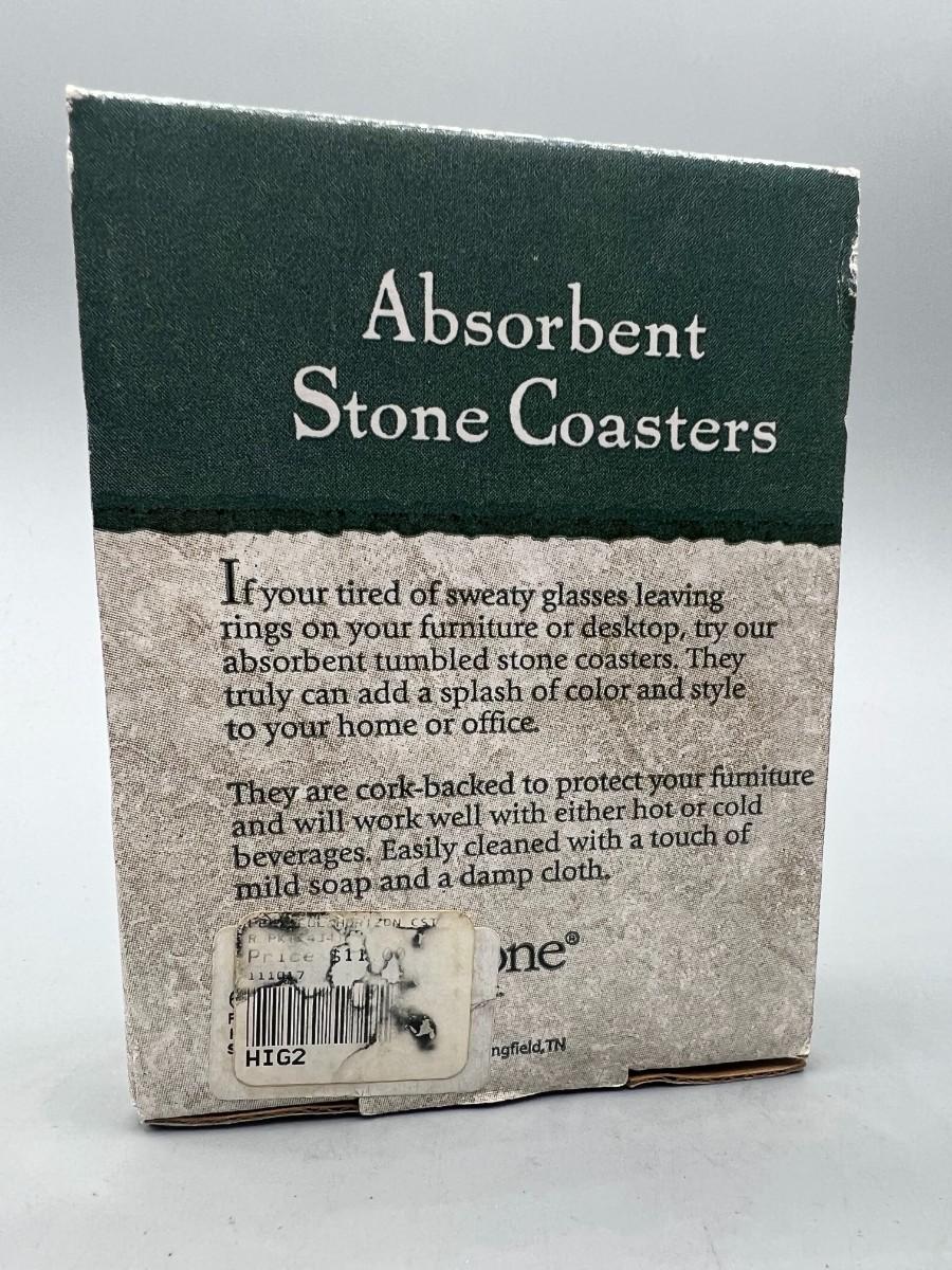 There is no significant damage to the coaster set and is still in the package, check pictures for more details and for sizing.
