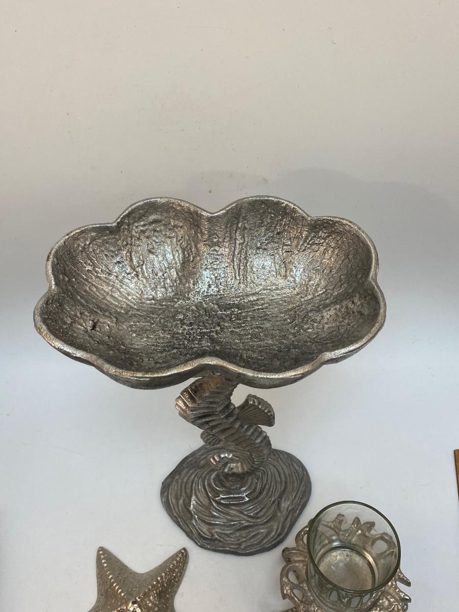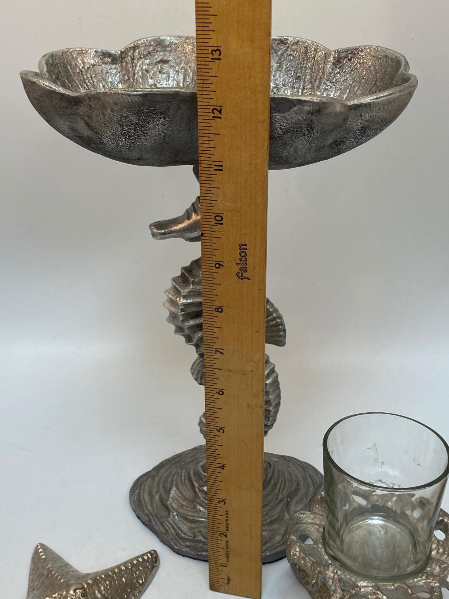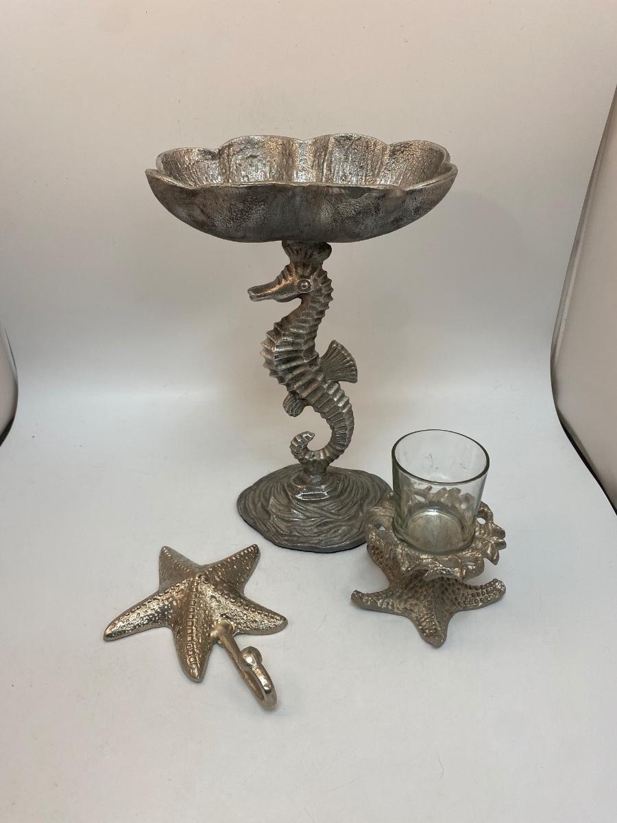 Nautical Sea Life Starfish Seahorse Home Decor Lot. Wall hook, candle holder and pedestal bowl. Good conditions.