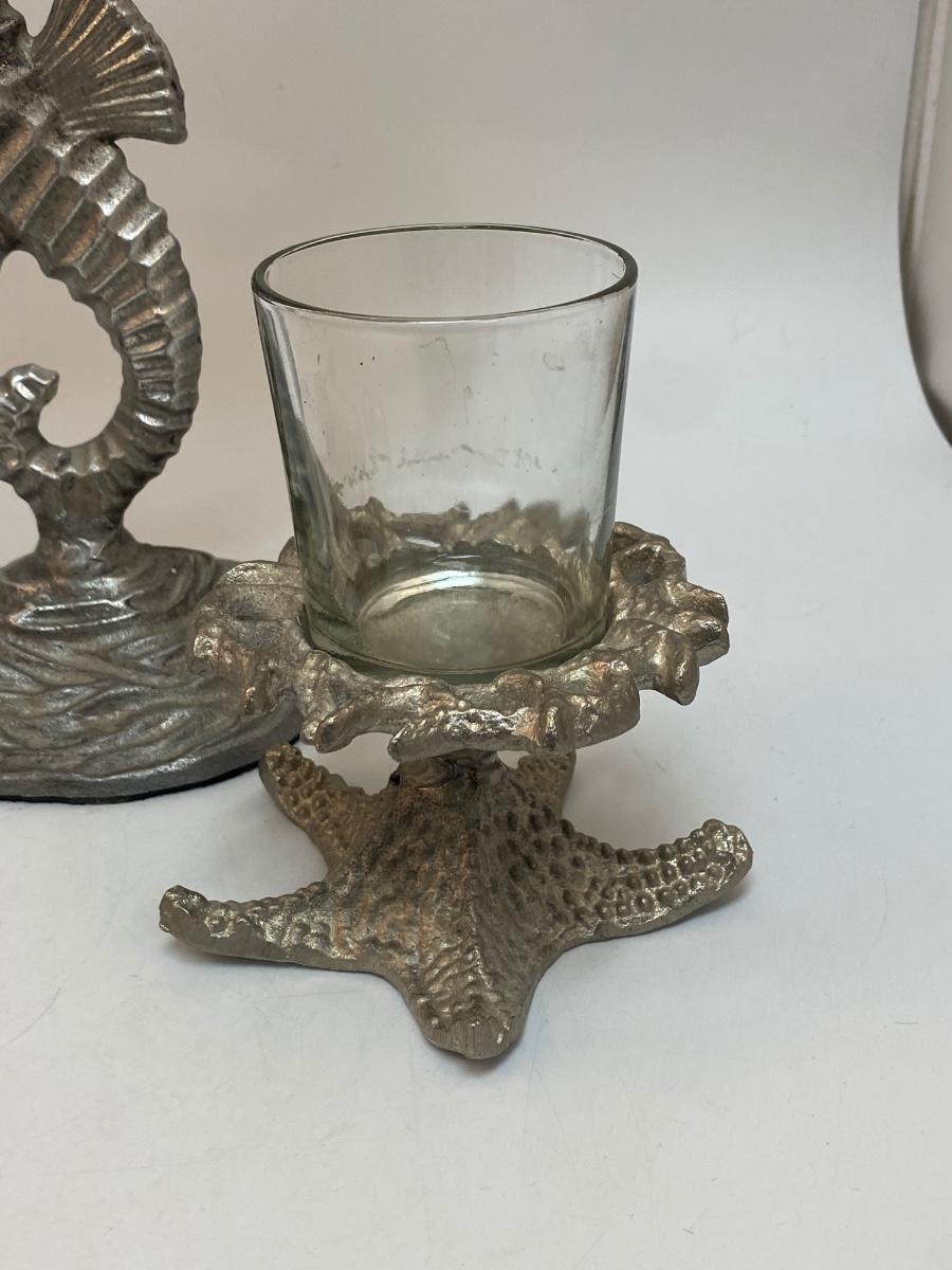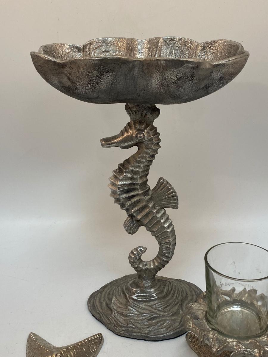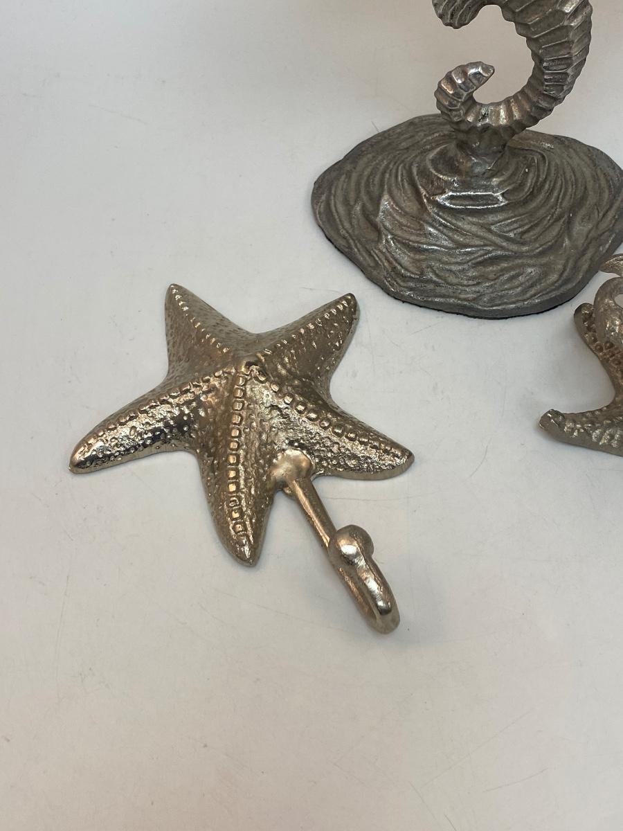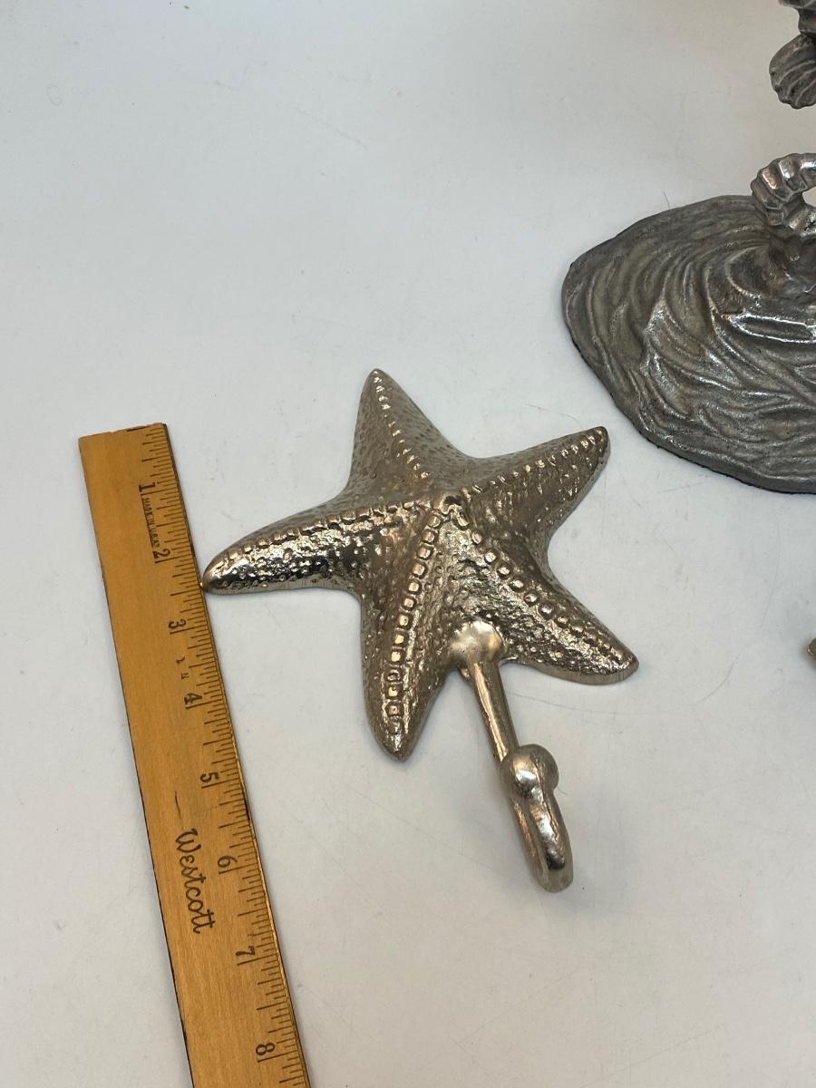 Nautical Sea Life Starfish Seahorse Home Decor Lot. Wall hook, candle holder and pedestal bowl. Good conditions.