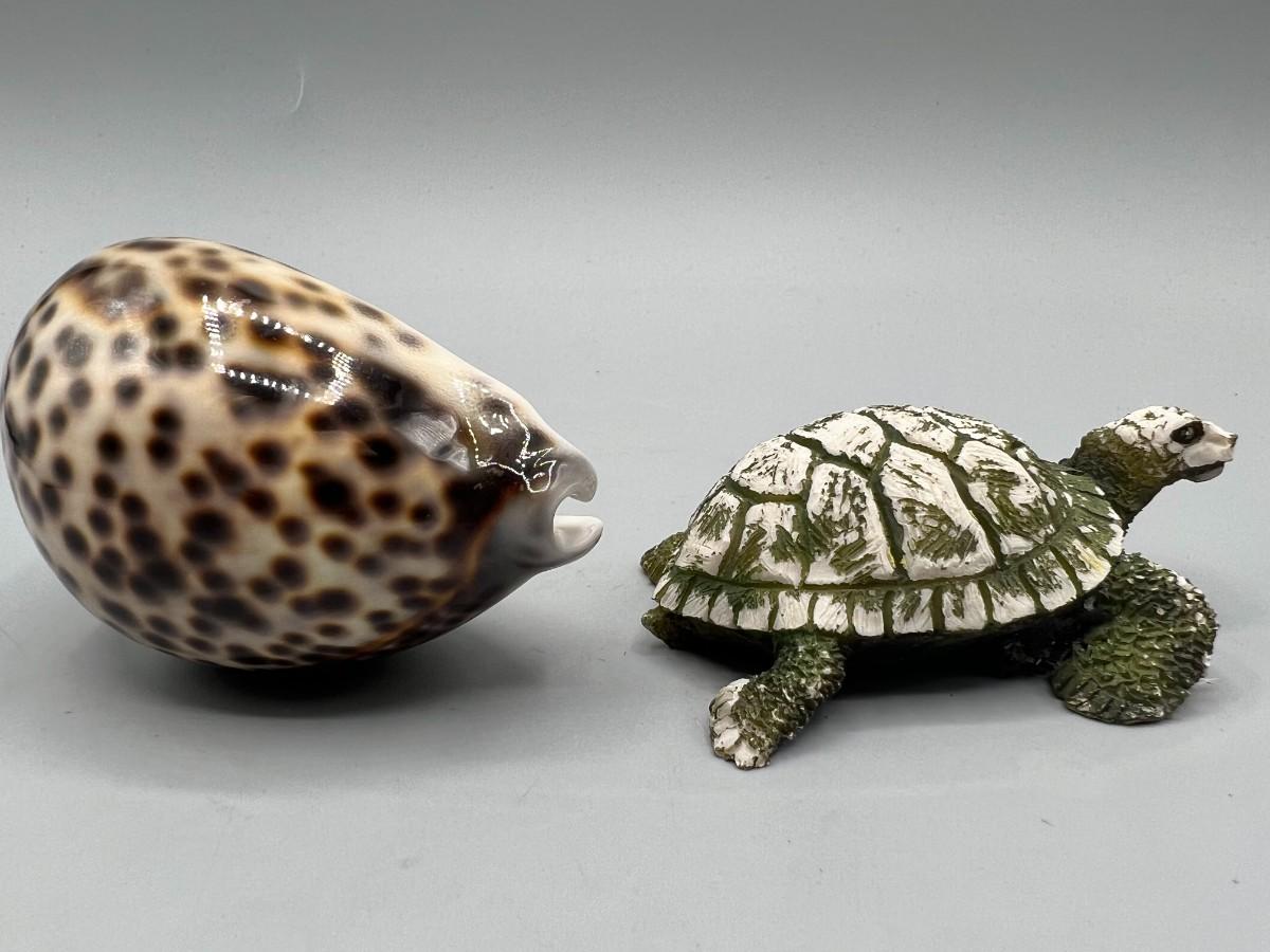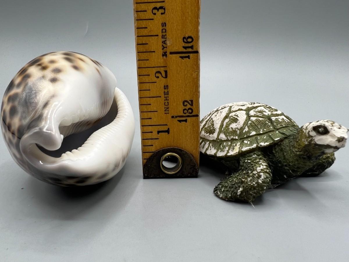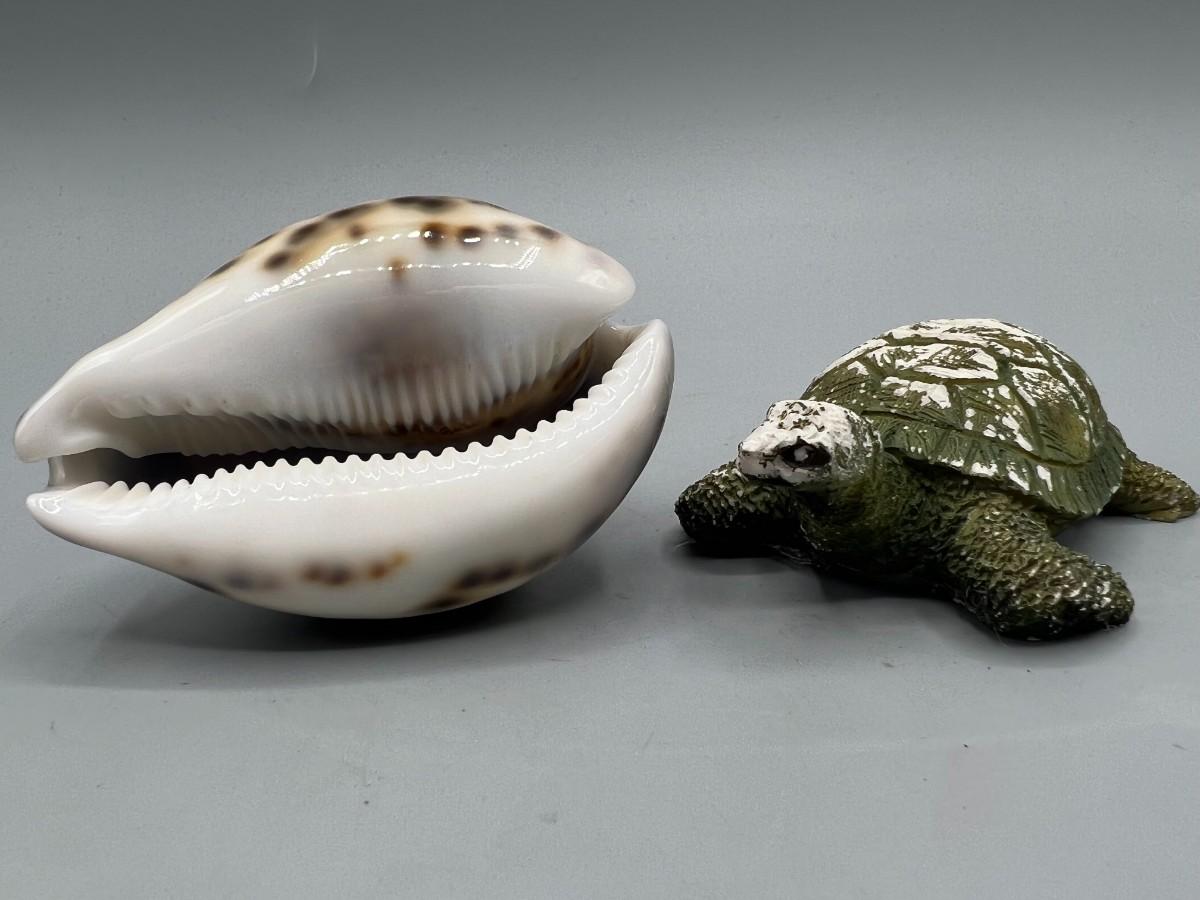 Nautical Sea Turtle Resin Figurine & Ceramic Conch Shell