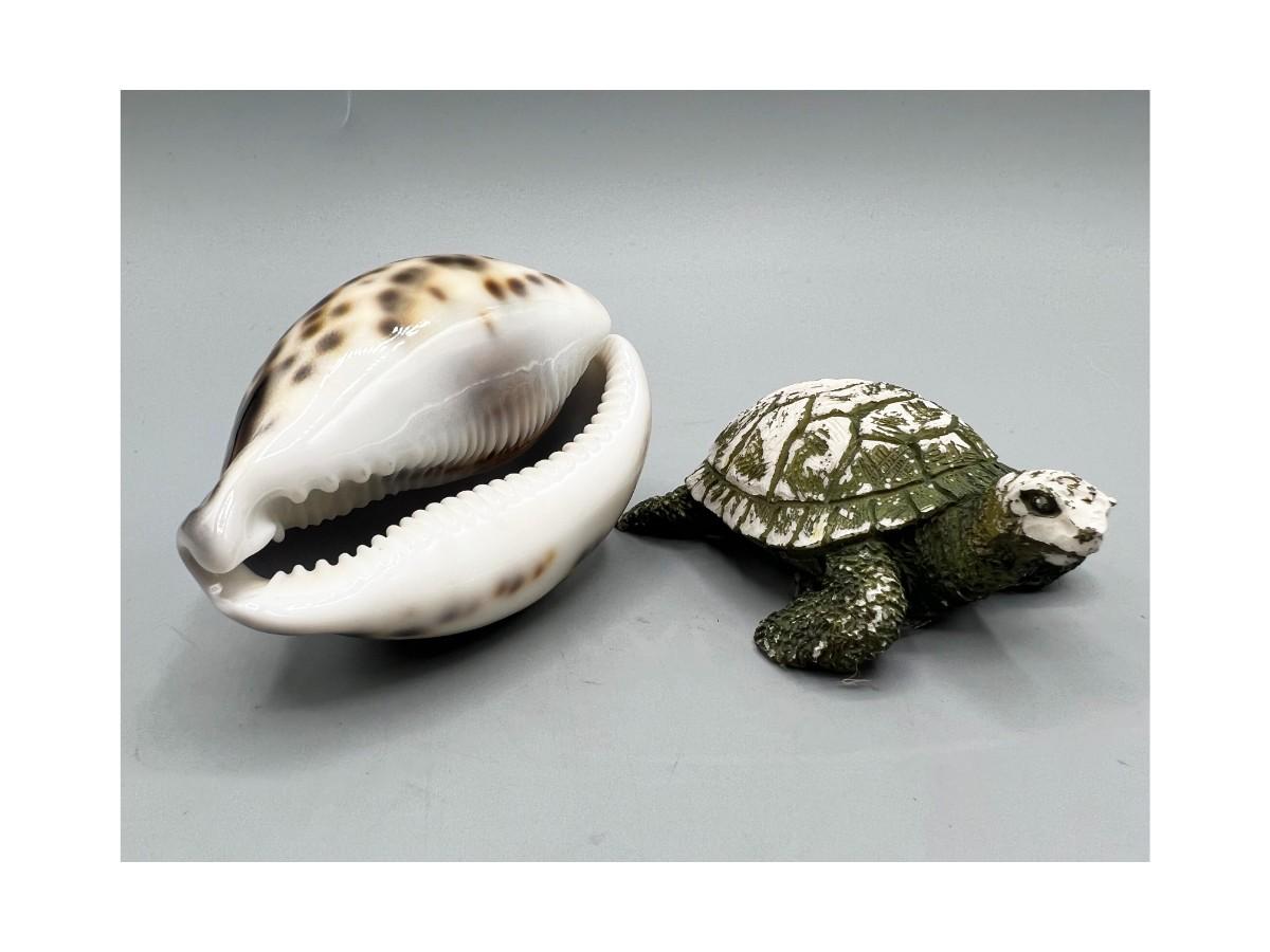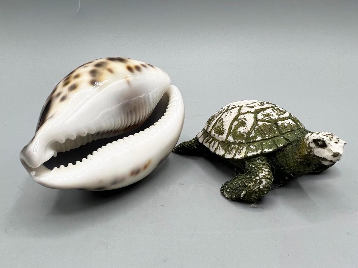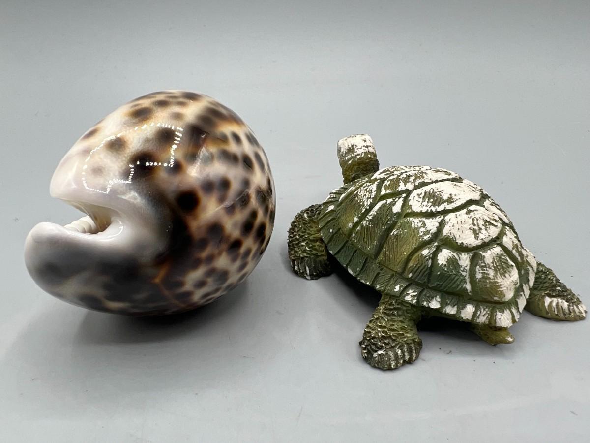Nautical Sea Turtle Resin Figurine & Ceramic Conch Shell