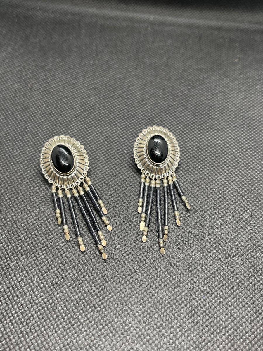 NAVAJO 925 Sterling Silver - Vintage Black Onyx Drop Earrings