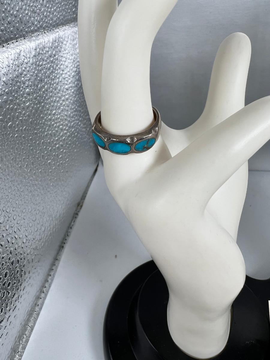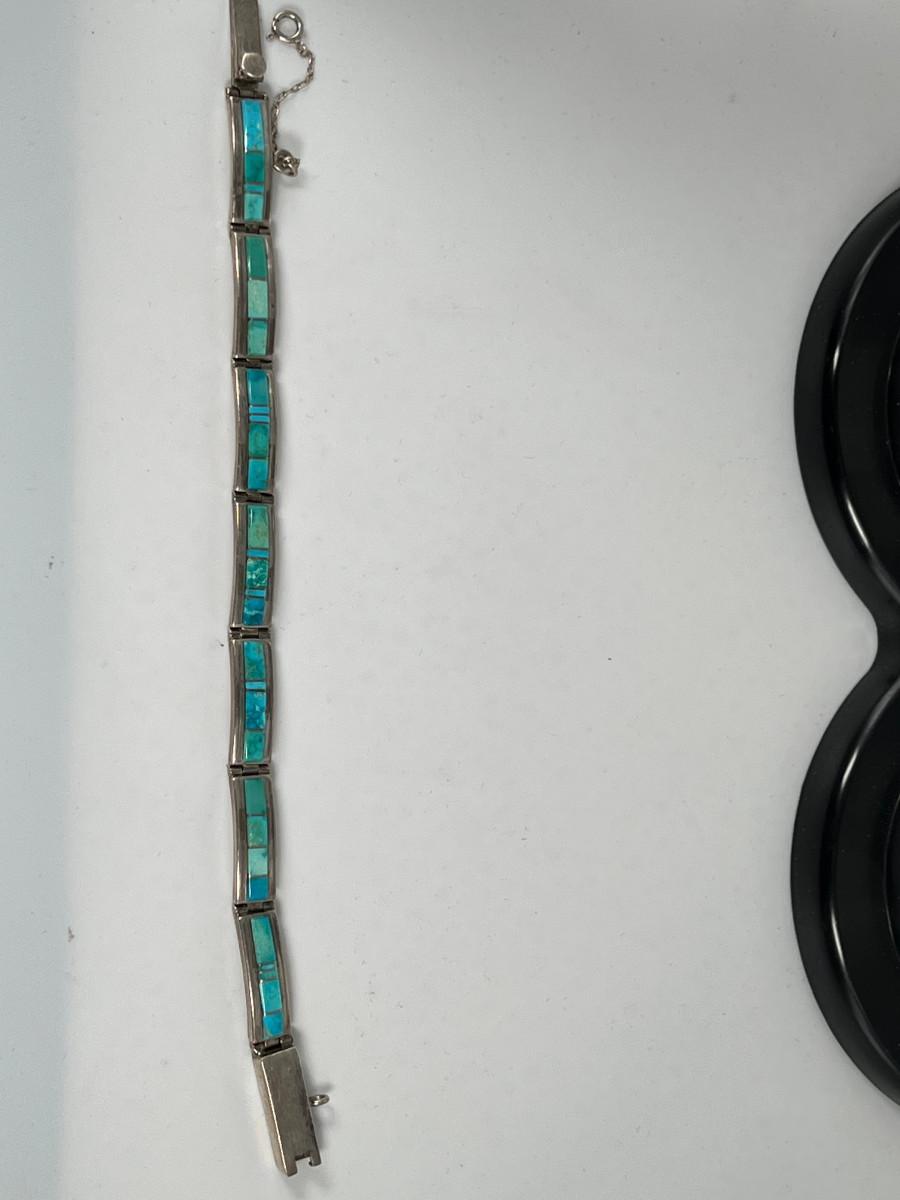 32 gram gross wt , Bracelet and Ring. Inlaid matching Turquoise ring has SS no hallmark.