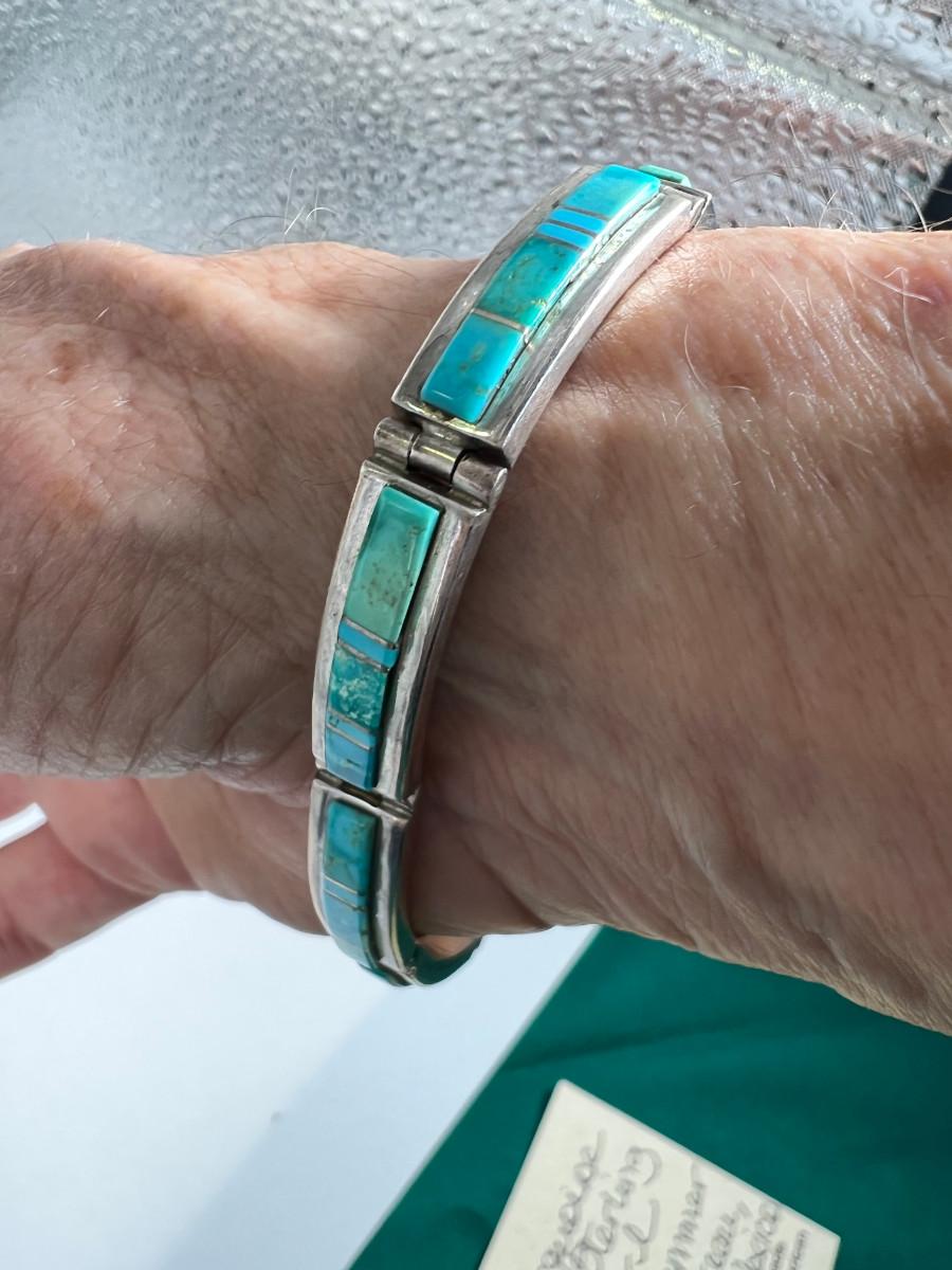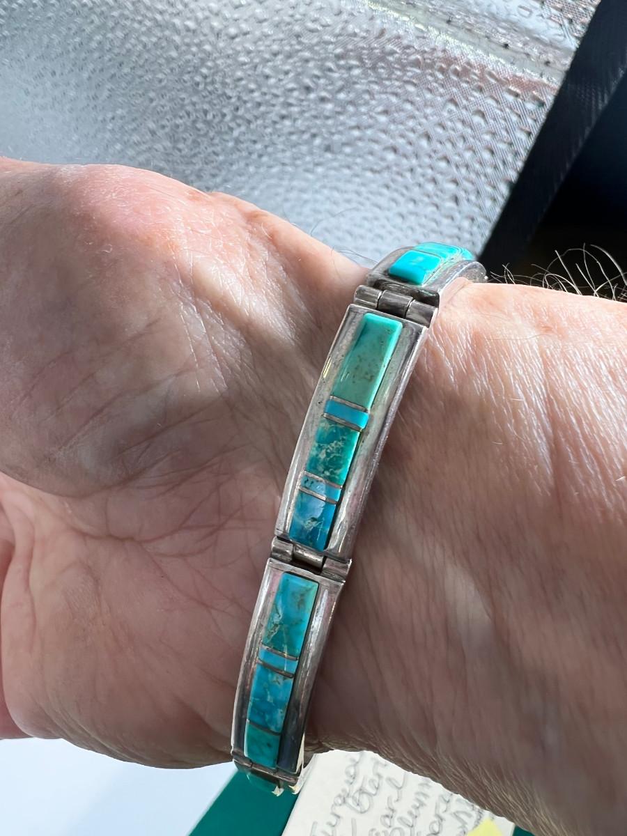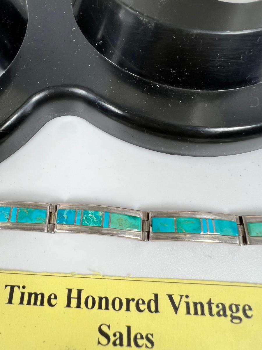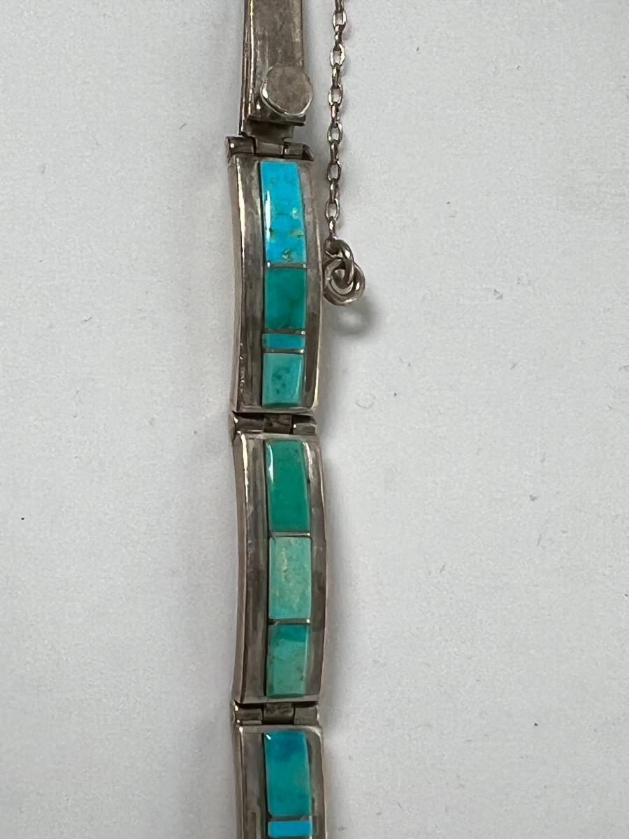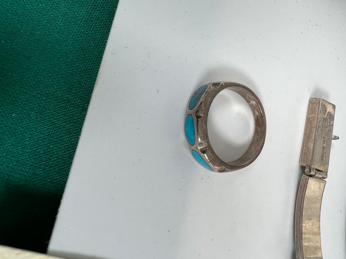 32 gram gross wt , Bracelet and Ring. Inlaid matching Turquoise ring has SS no hallmark.
