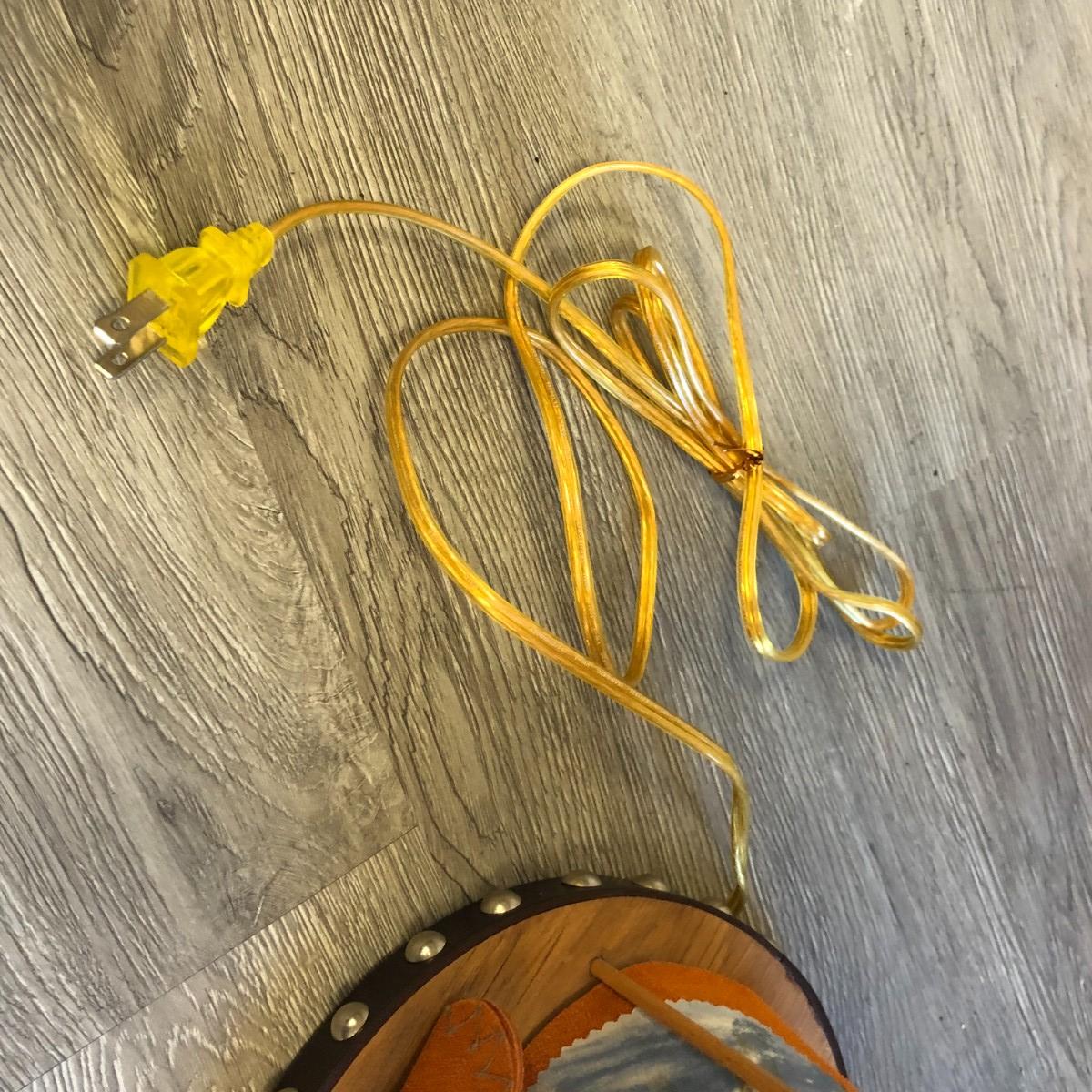 Description: Navajo Campfire lamp with shade Measurement approximate: Lamp: 20 H / Shade: 9 H (Inches)Material: Metal/ Wood