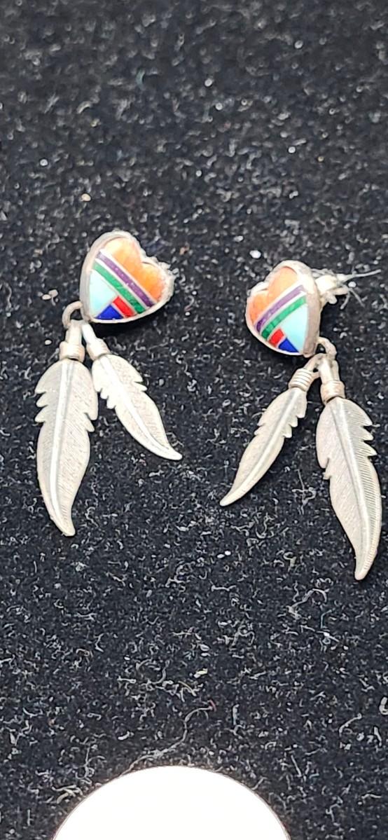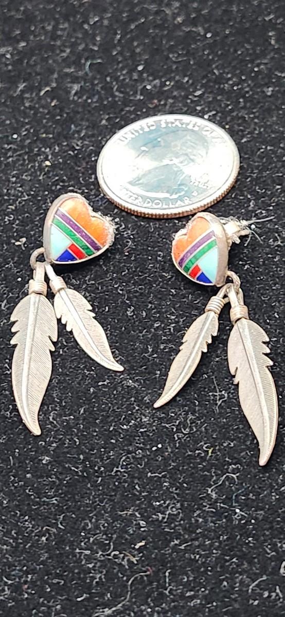 Multi stone inlay with dangle feathers, pierced.