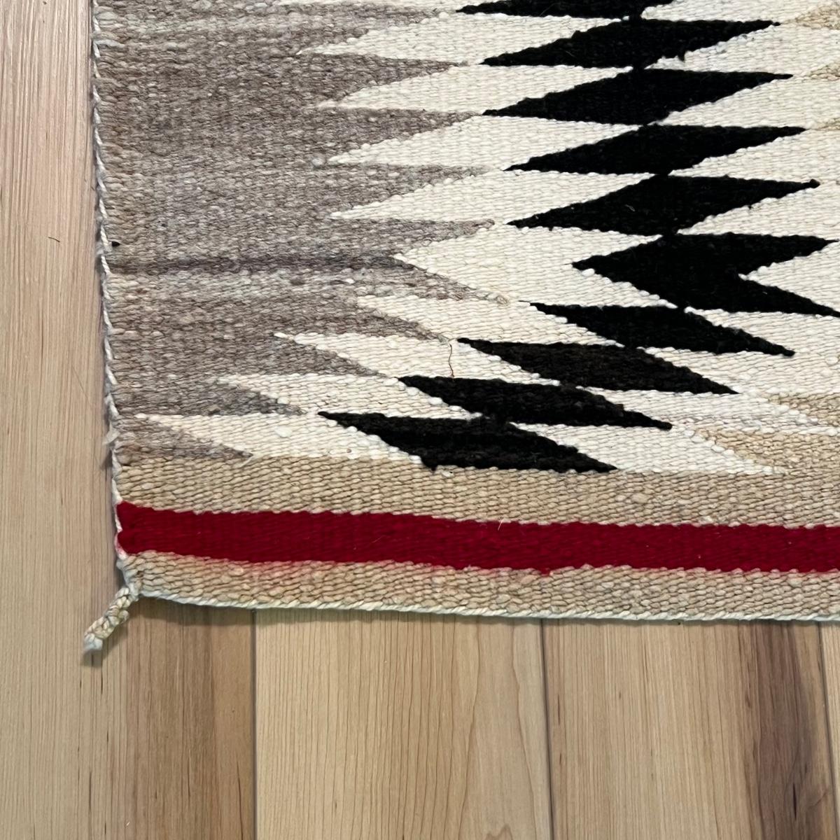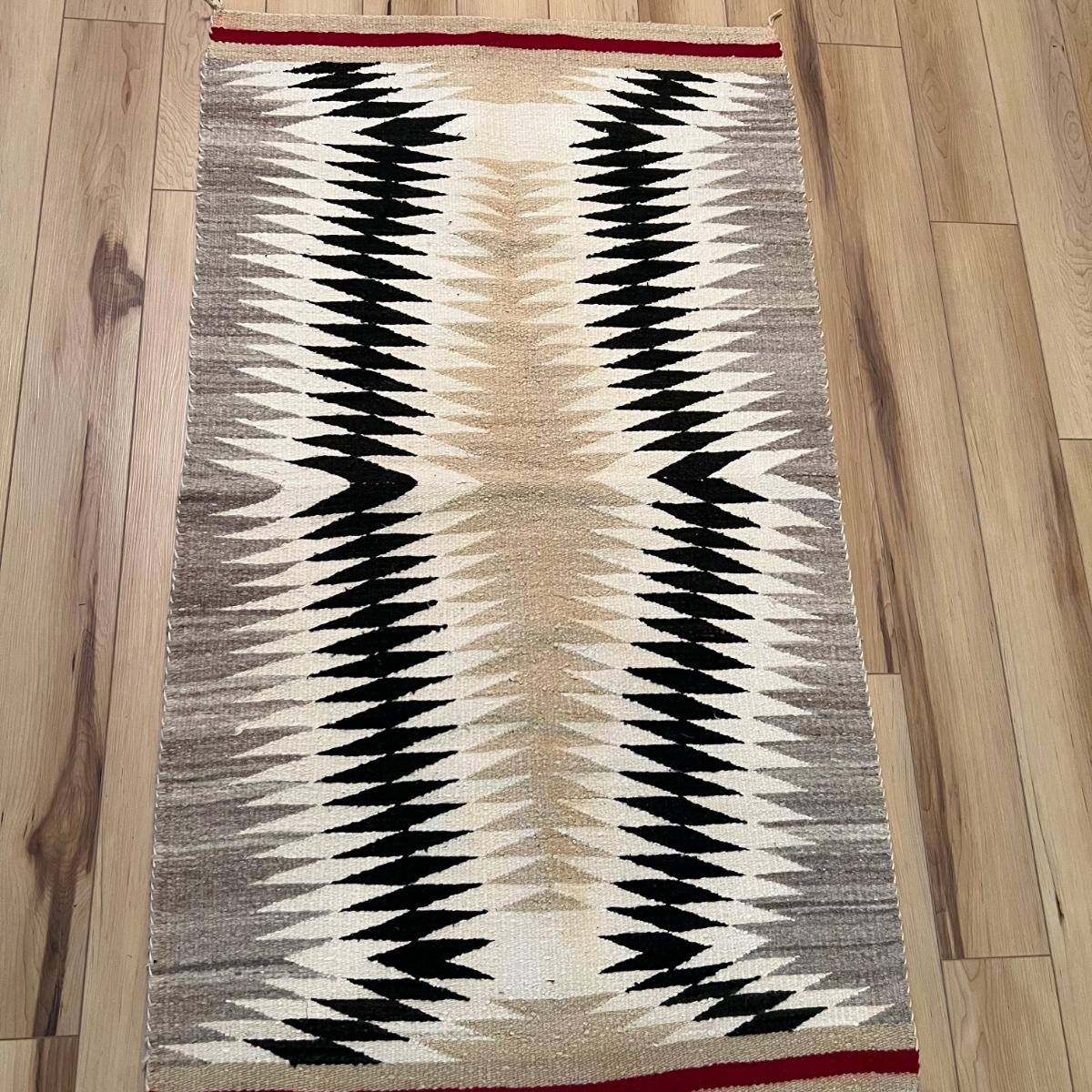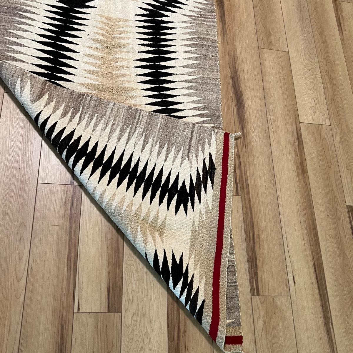 This attractive Navajo rug/blanket is reportedly an Idoyo Navajo, information given to us by the estate owner.