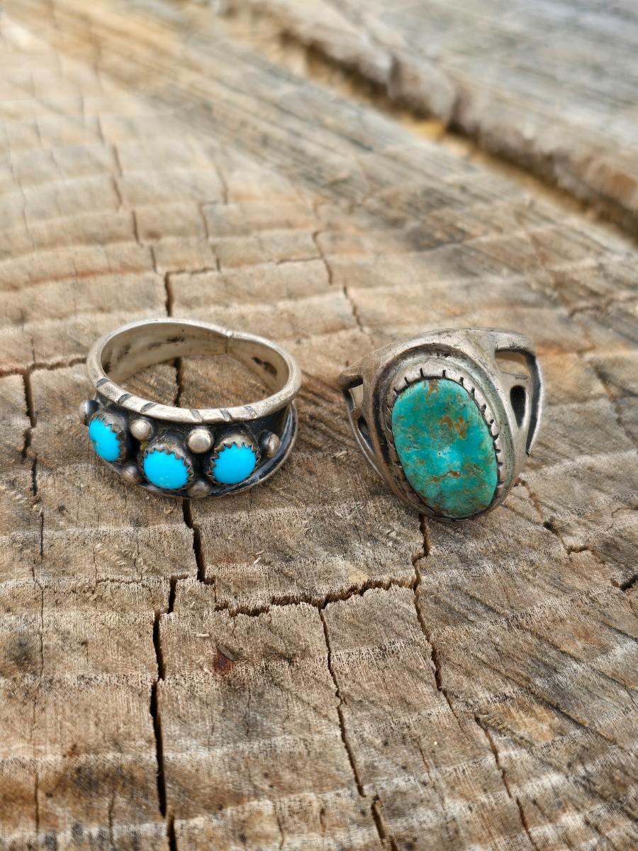 Sterling silver Navajo Rings with turquoise .925 Size 11,5 & 10
