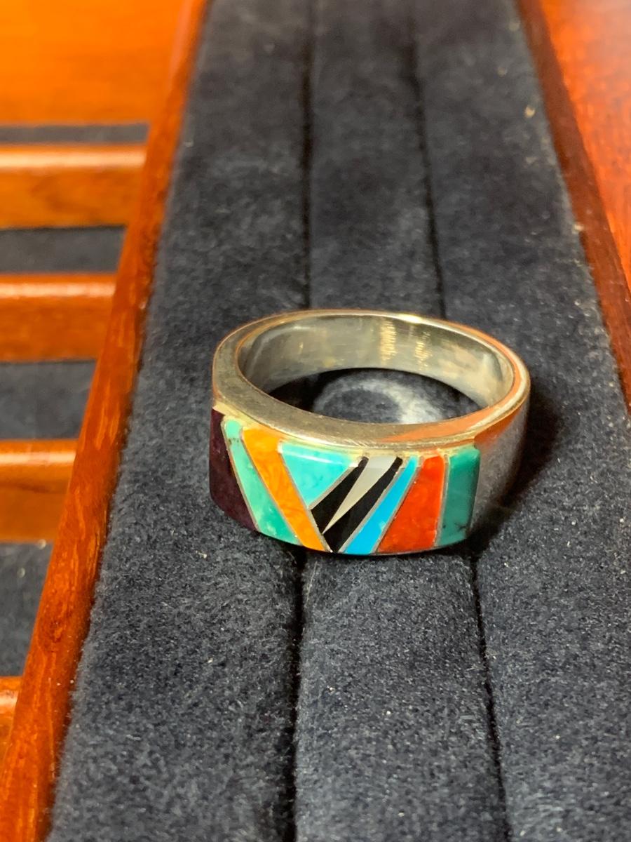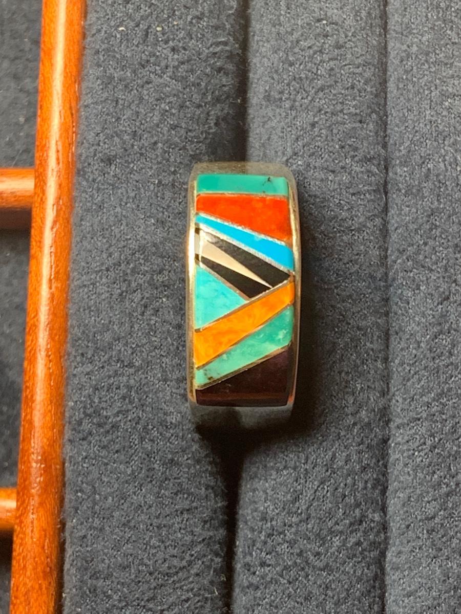 Navajo Signed Inlay Men’s Ring - Calvin Begay