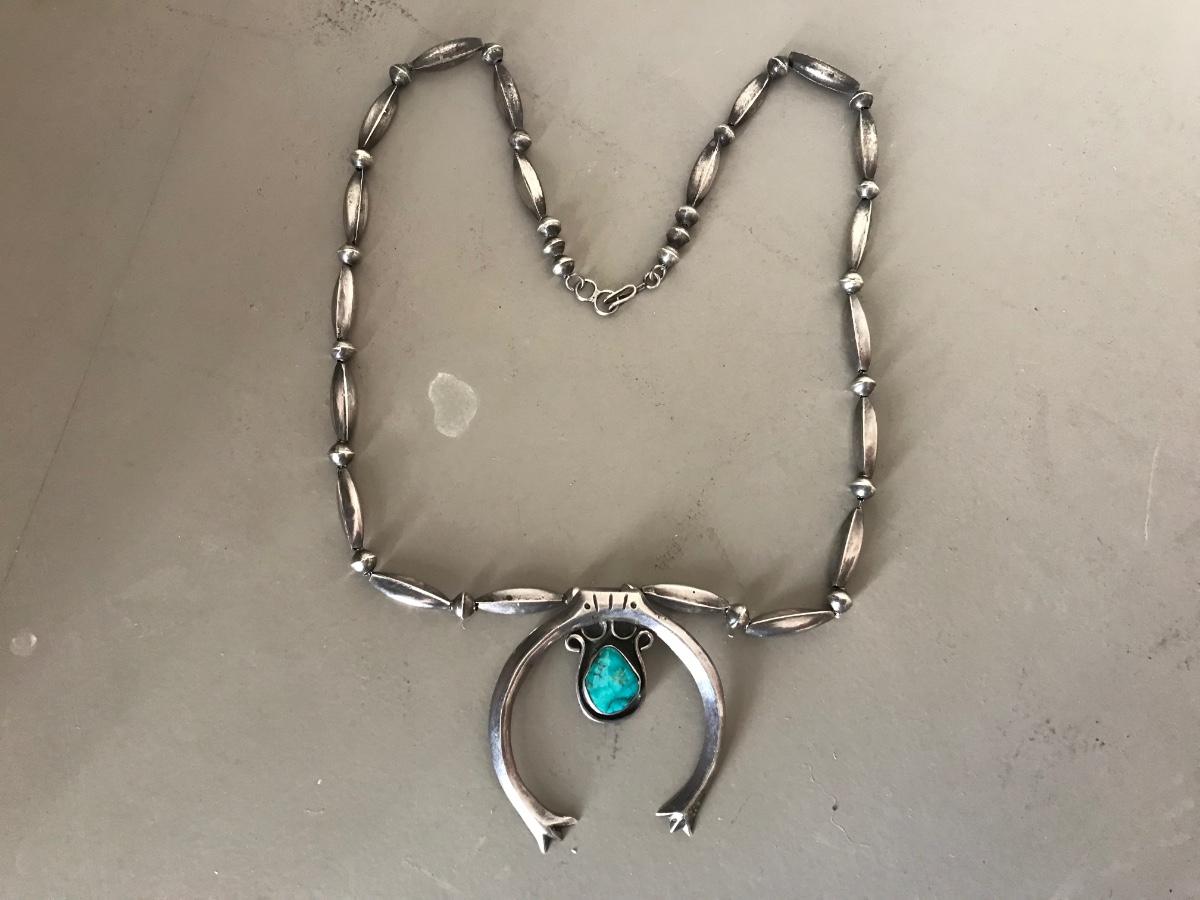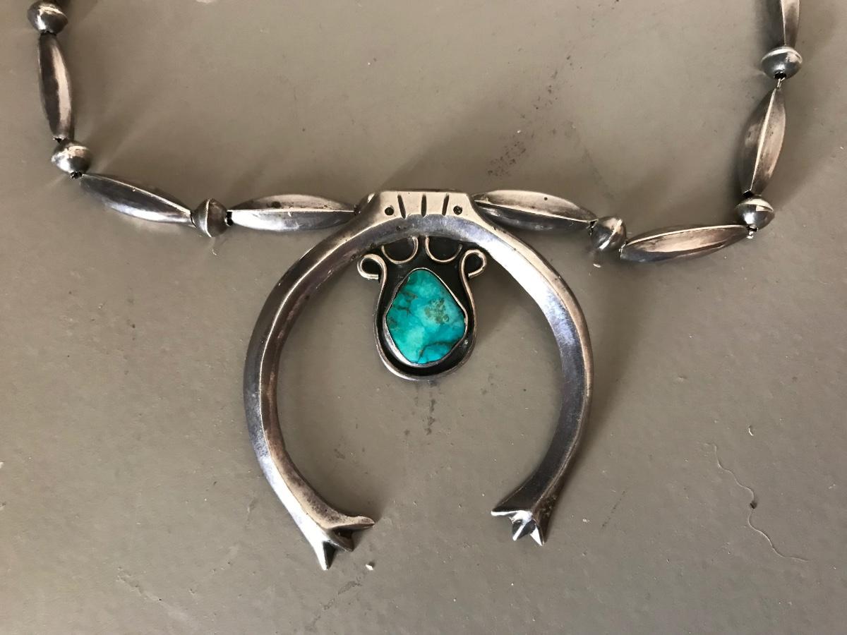 Signed necklace with naja decorated with turquoise all in silver very desirable piece of jewelry