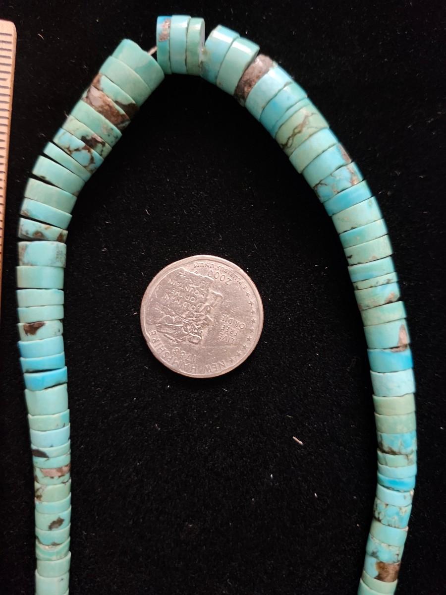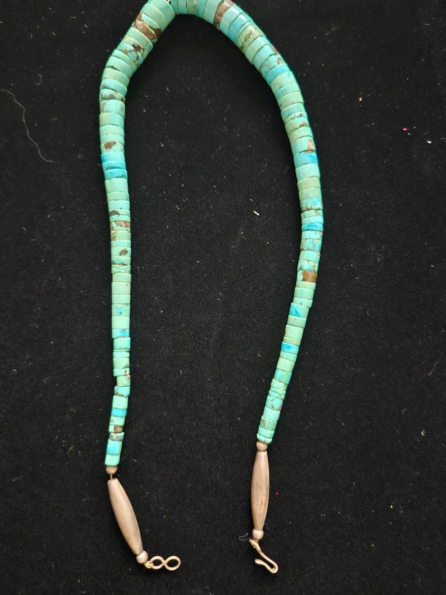 Beuatiful turquoise beads in this necklace, about 16 inches long.