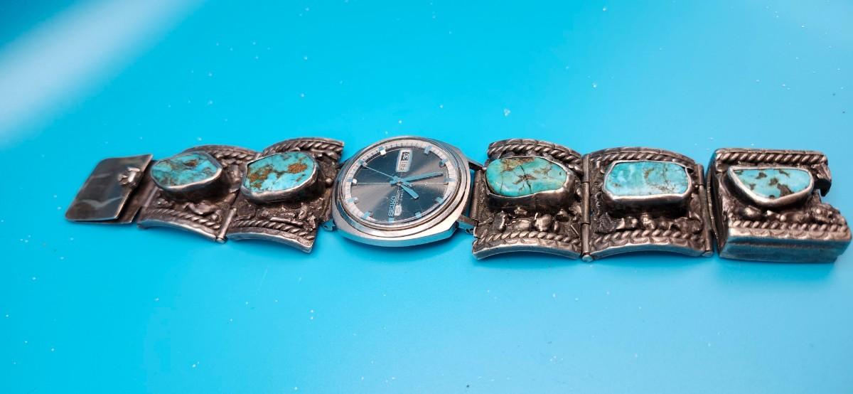 Navajo Turquoise and Silver Watchband with Seiko Watch