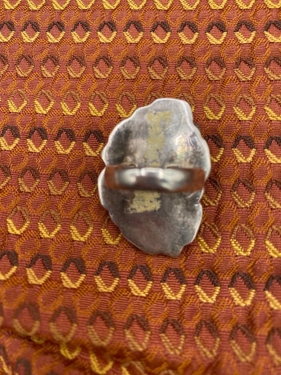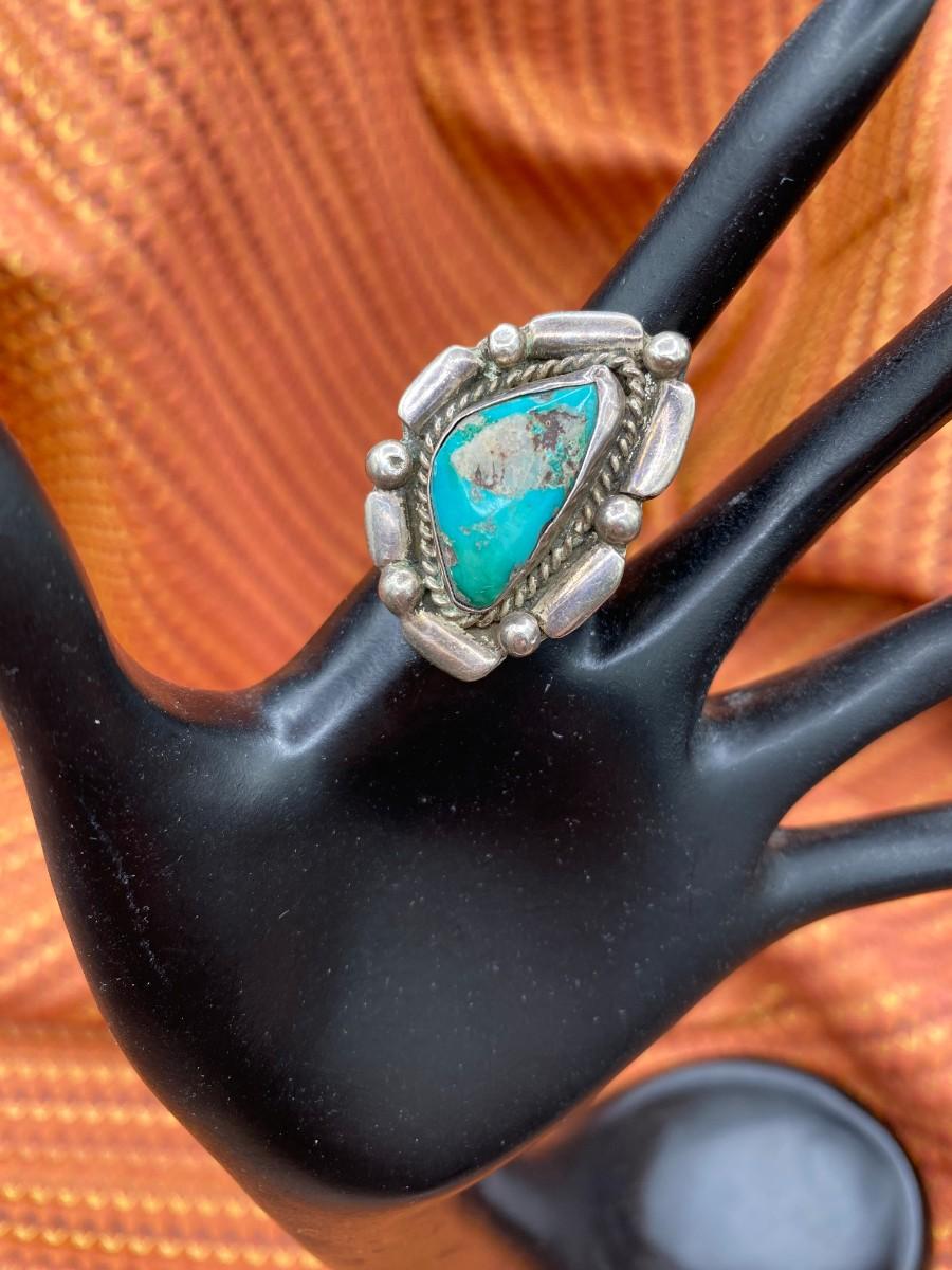 Single stone, sterling, unsigned. Lovely setting with a rope design. Size 5.5