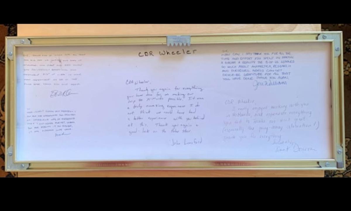 This is a unique Naval Academy architectural montage (signed TISH ’99) that was presented as a personal gift to CDR Wheeler, who transported a research/support team to McMurdo Station, Antarctica before beginning his next assignment as XO of the USCGC Polar Star (the U.S. heavy icebreaker used in Operation Deep Freeze).