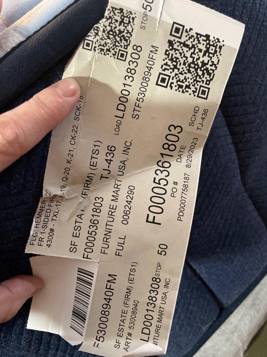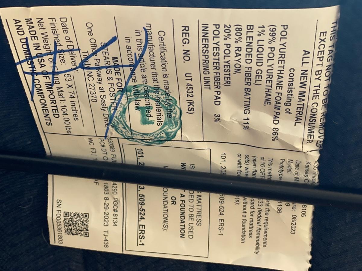 Stearns & Foster Estate Firm Mattress was purchased from furniture mart in 8/2023