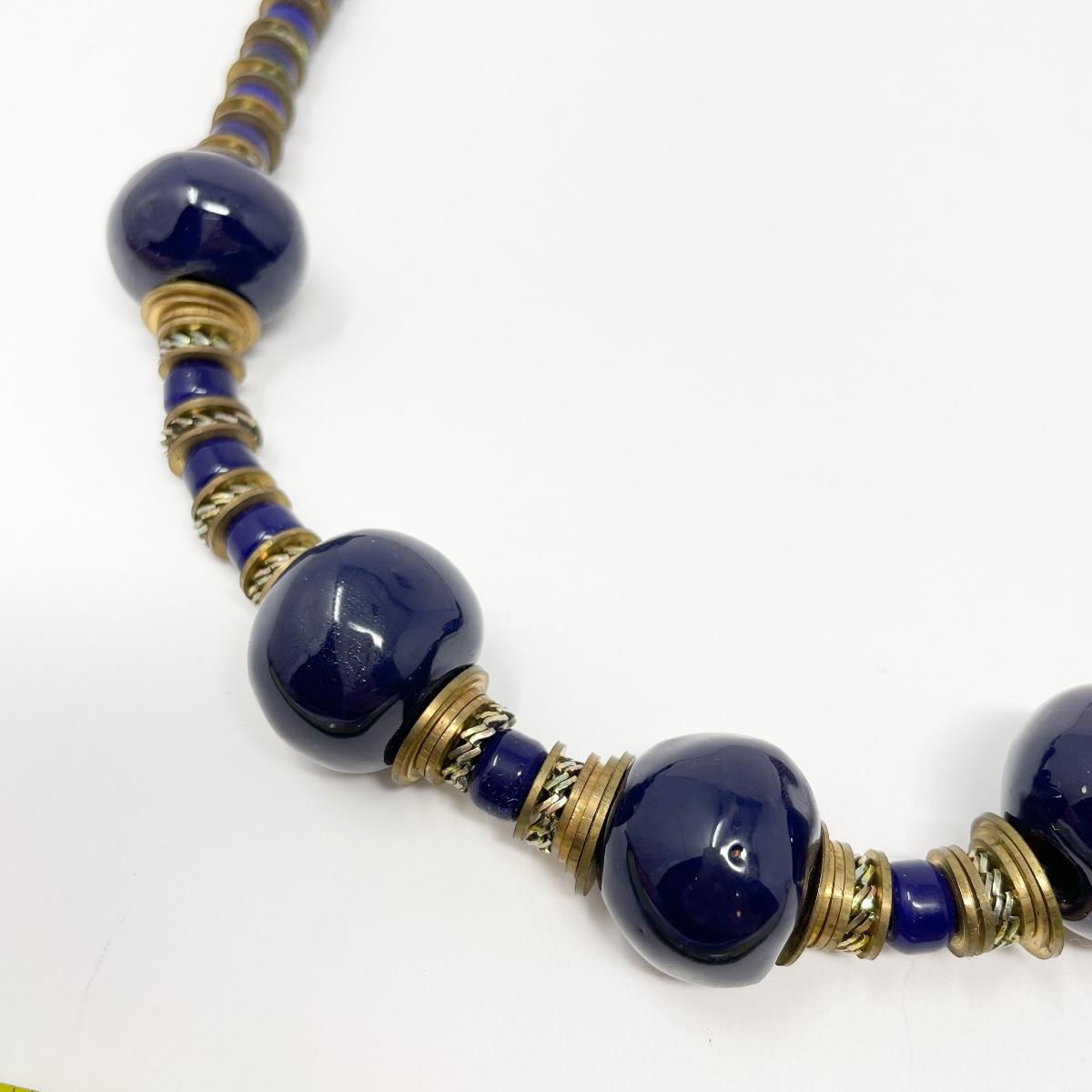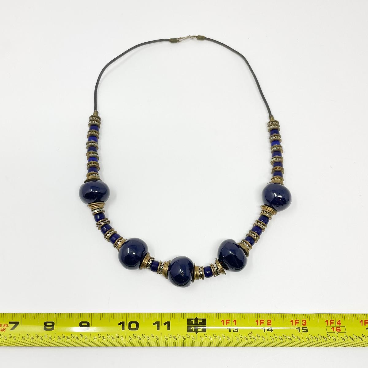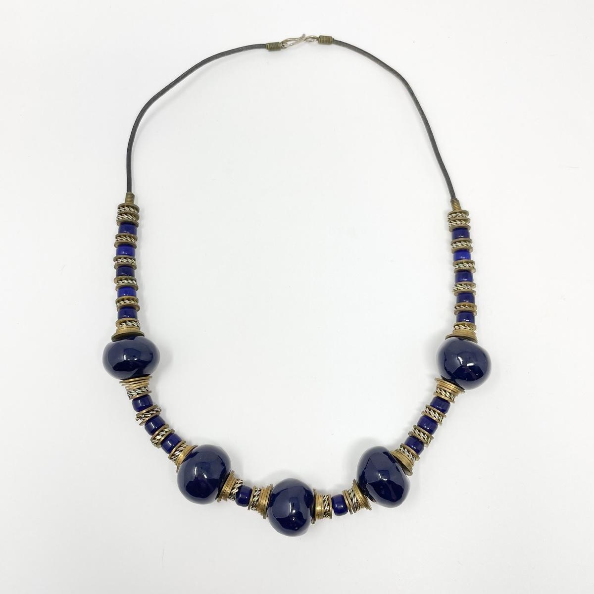 NAVY & BRASS BEADED NECKLACE #1