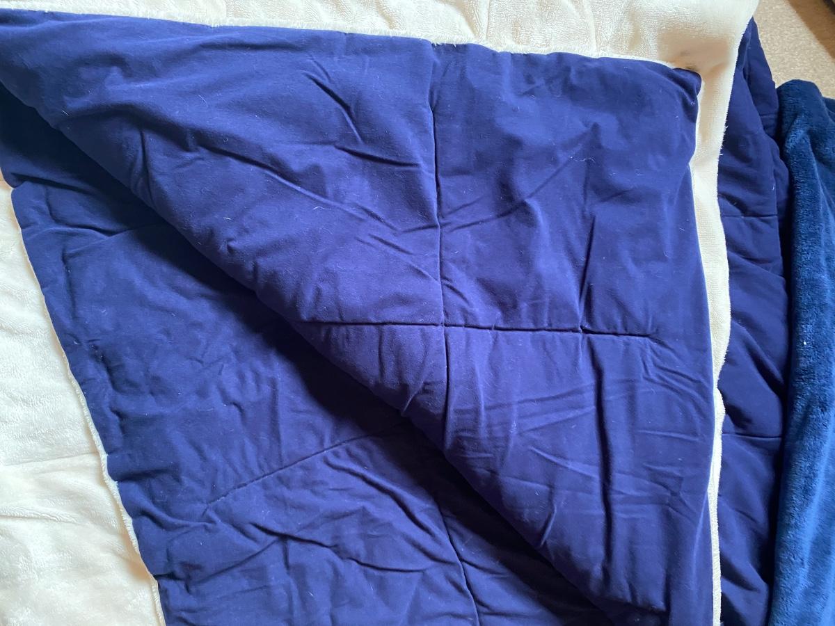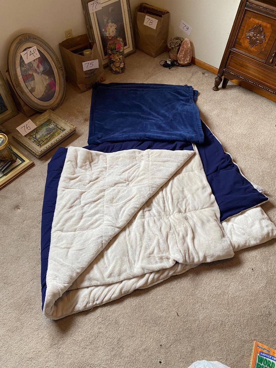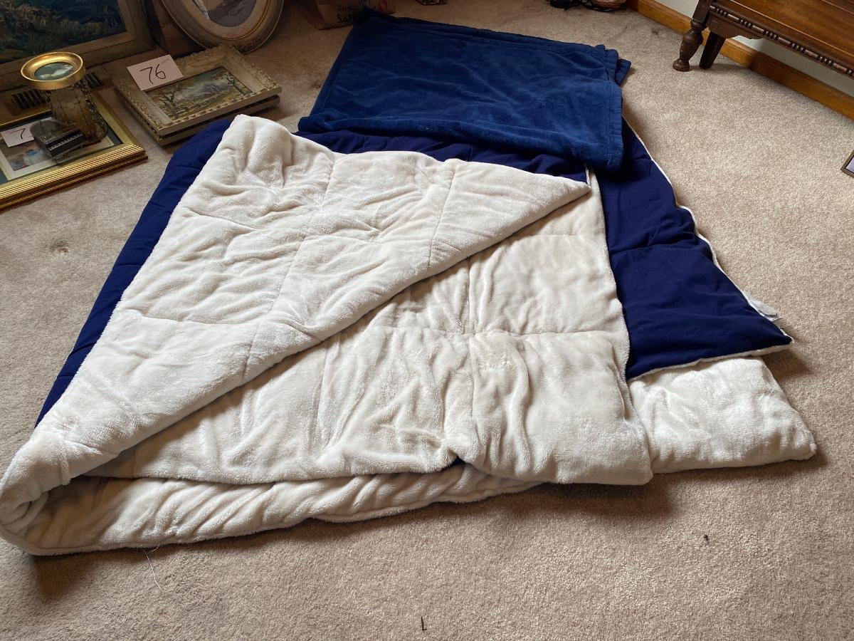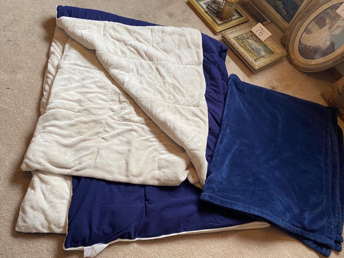 NAVY BERKSHIRE THROW AND CANYON QUEEN SUPER SOFT COMFORTER
