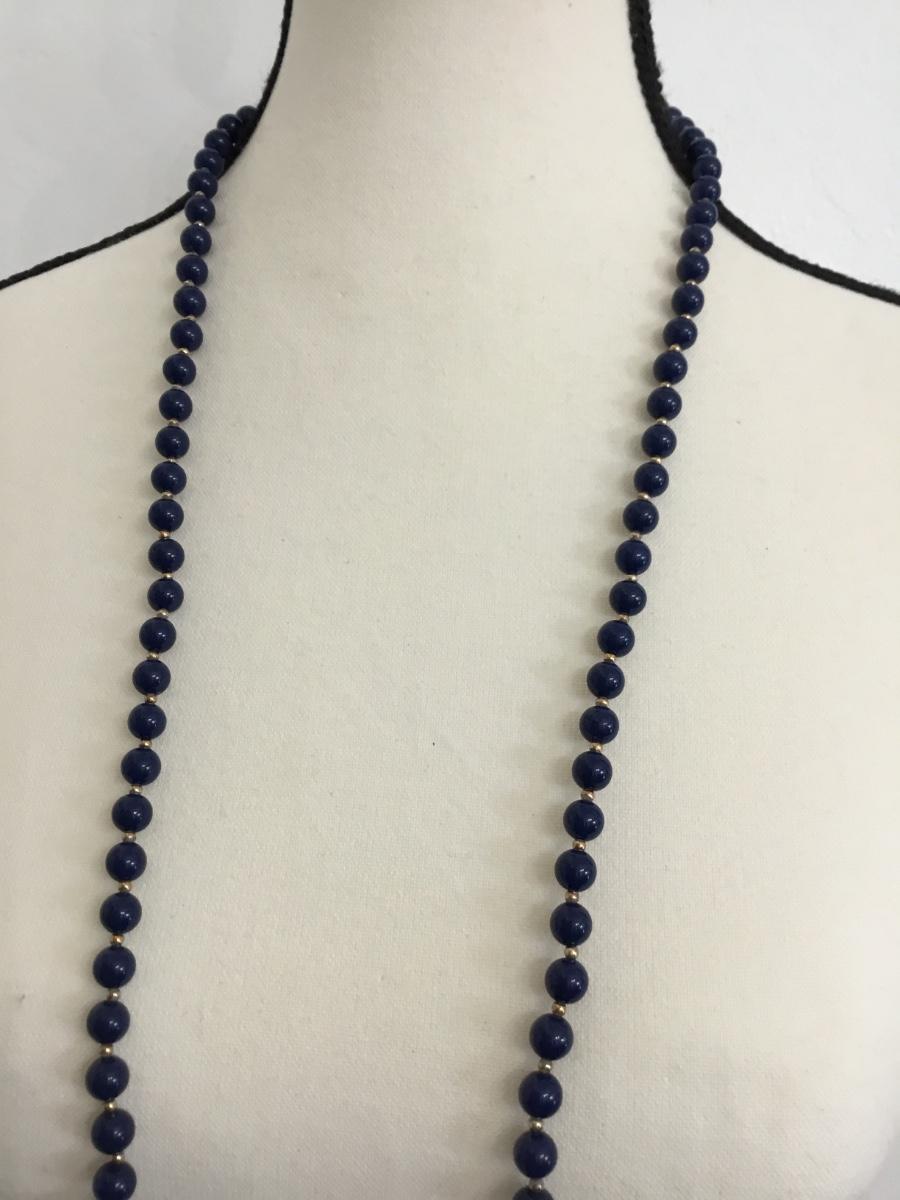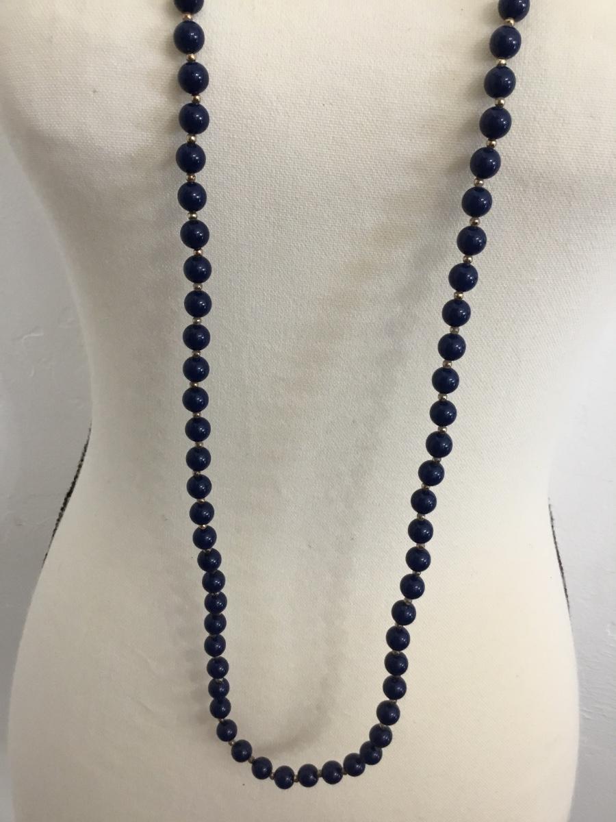 Navy blue long beaded fashion necklace