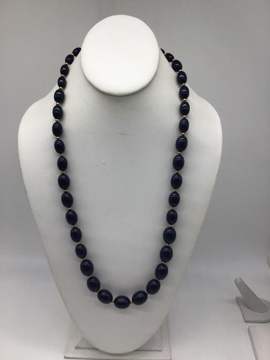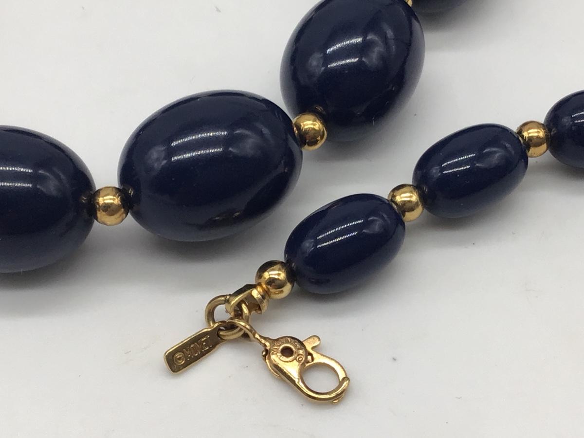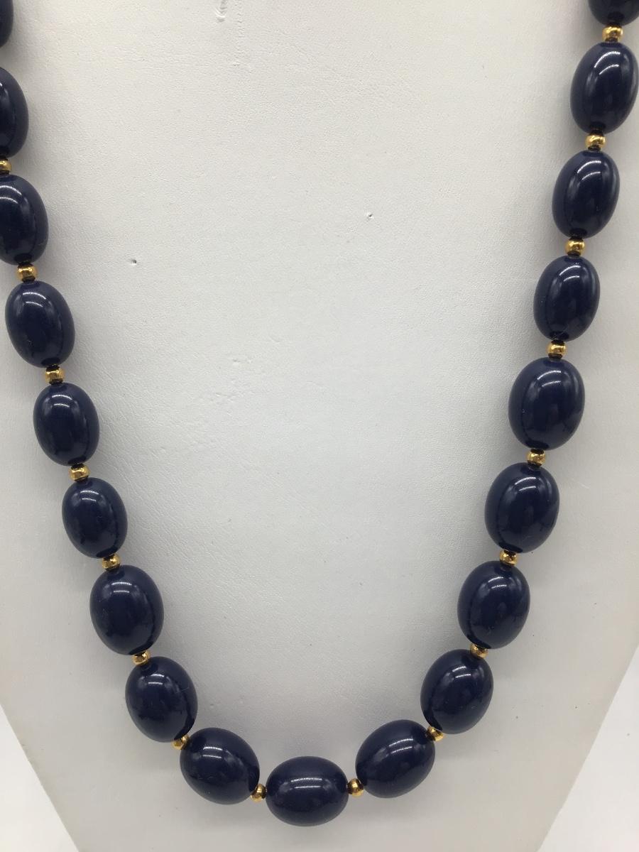 Monet Navy Blue Lucite Bead Gold Accent Classic Necklace Lobster Claw Clasp