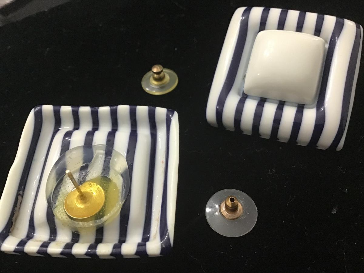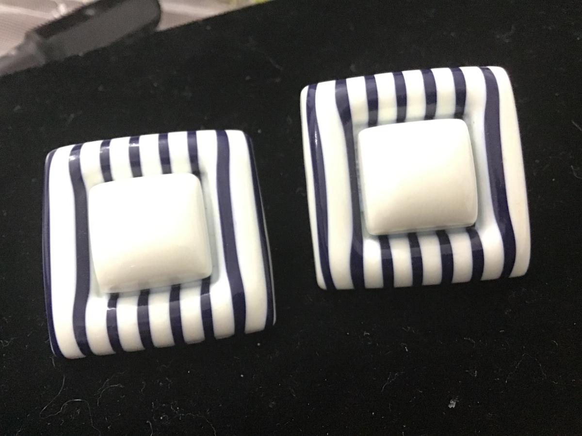 Navy Blue &White Acrylic Type Large Earrings