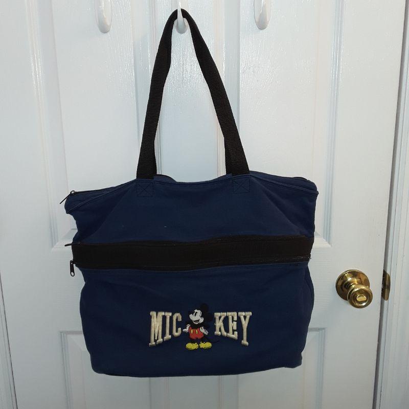Navy Embroidered Canvas Tote with Mickey - Two outer zippered compartments with large zippered interior compartment - very good condition