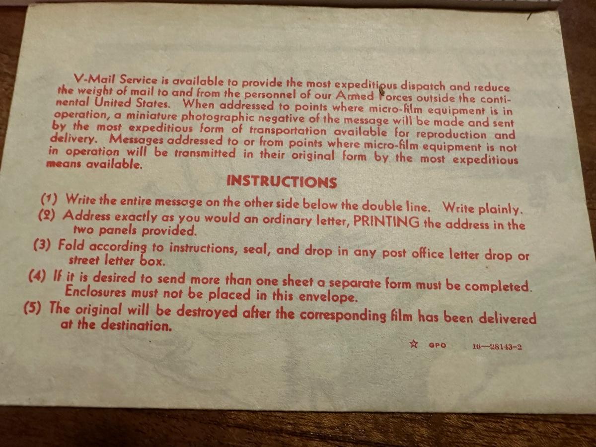 Navy V Mail Dated 1942