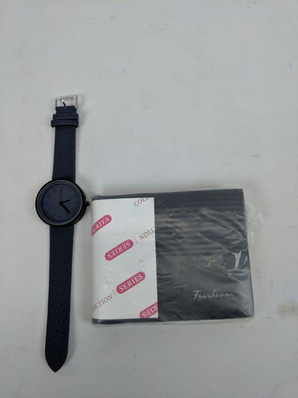 Navy Watch & Faux Leather Wallet - New