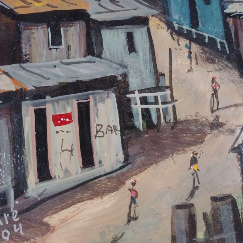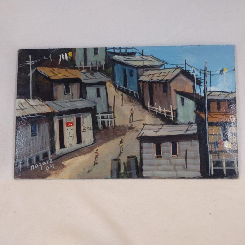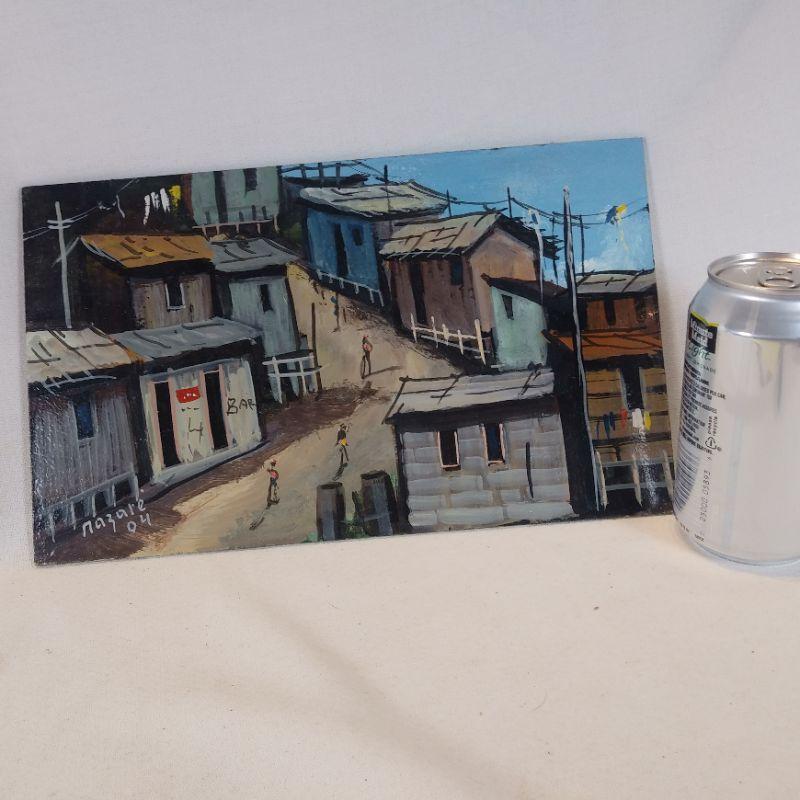 This is a small oil on board painting of an unusual street scene somewhere in South America. Signed Nazare "04. It measures 12-inches X 8-inches. High Gloss in very good condition. Art is so subjective but if you enjoy street scenes this original may be for you. Starting Bid/Reserve is $10.