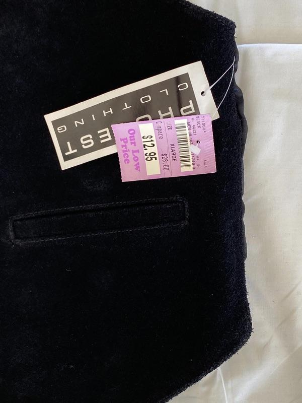 Black suede leather vest from Protest Clothing. Size XL, believe it is a woman's vest. Has hang tag attached. There is some discolor, possibly dust from being in closet.
