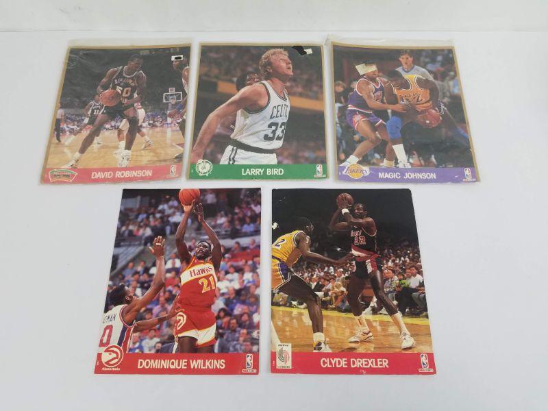 NBA Hoops 8x10 Glossy Photos, Qty 5: Robinson, Bird, Johnson, Wilkins, & Drexler