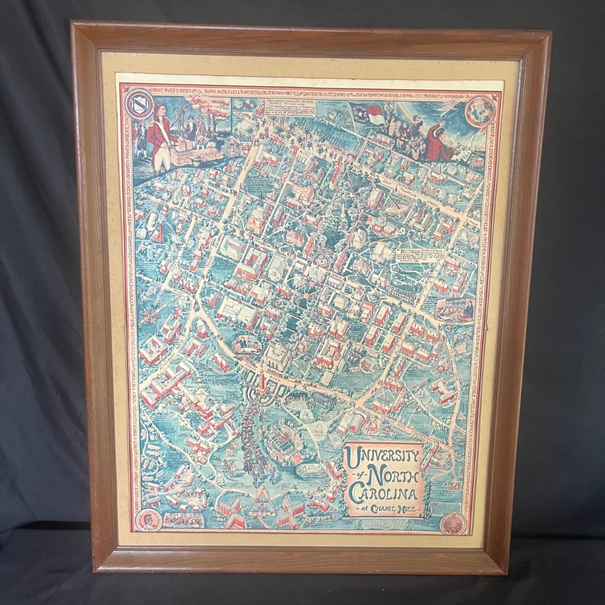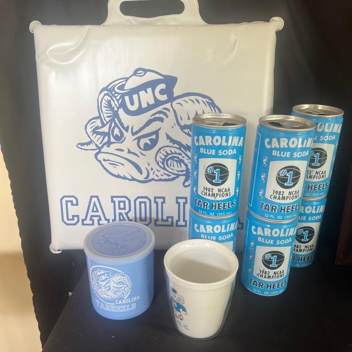 Lot includes throw that measures 44” x 54”, pillow, framed map, signed miniature football that appears to be Johnny Unitas but we cannot guarantee it. Also includes commemorative cans, clock that likely needs a new battery, seat cushion and more.