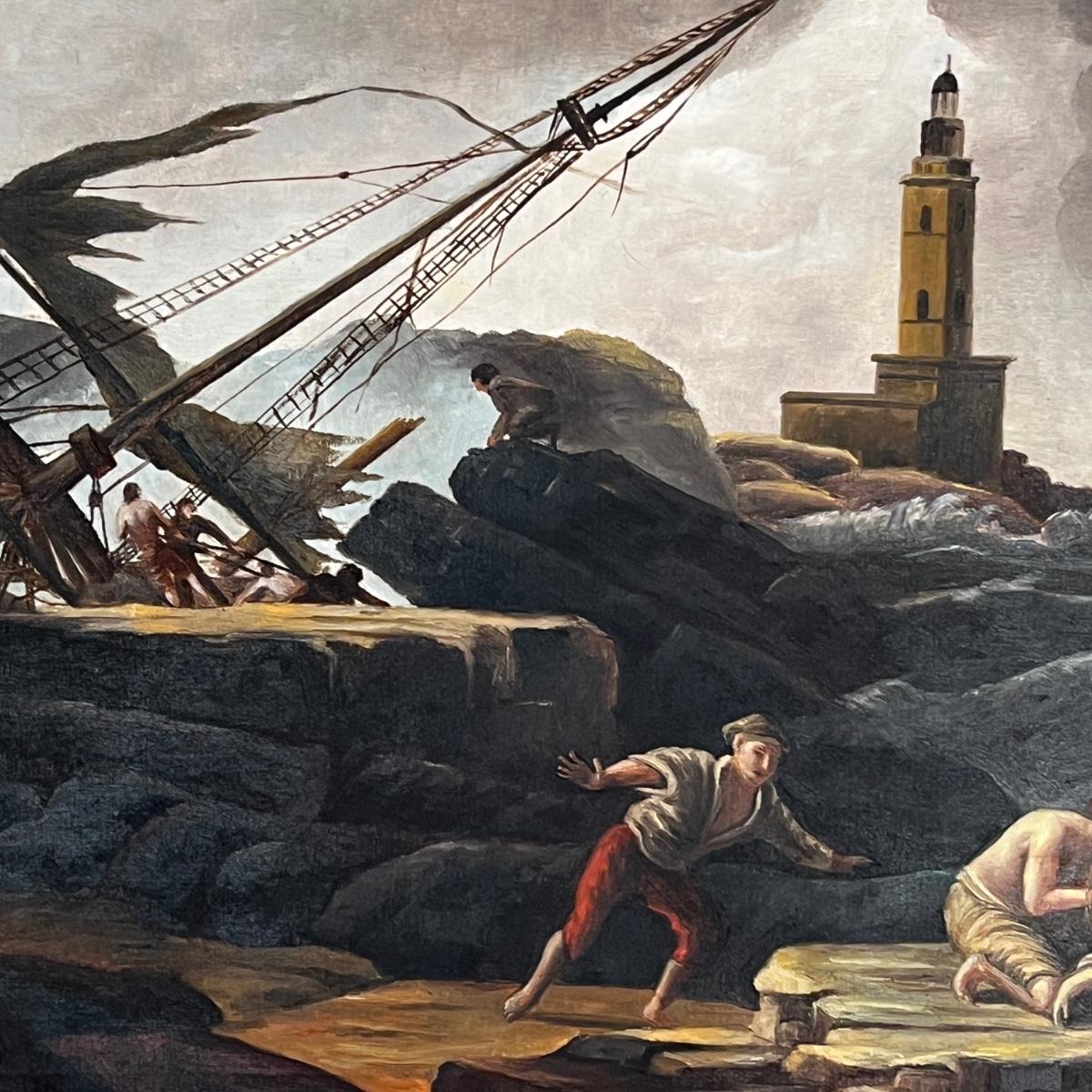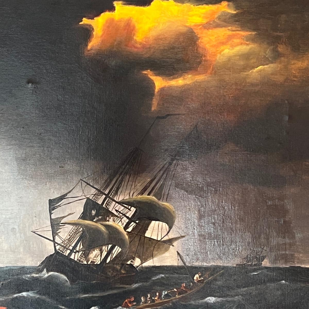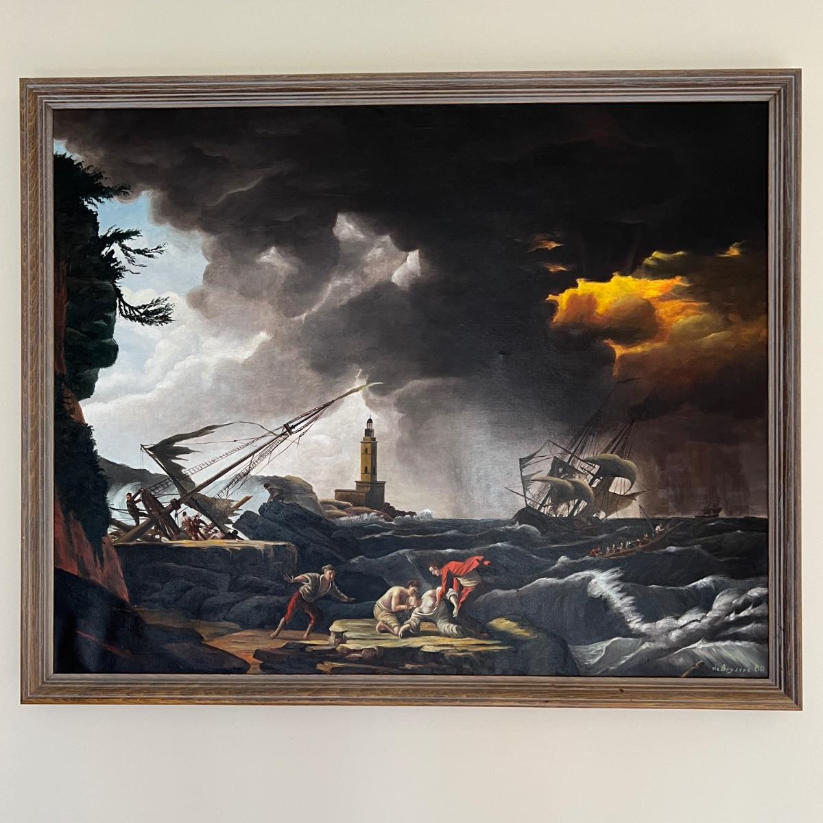 Nautical Oil On Canvas Original Framed Signed Oil 34" x 41" Painting Shipwreck
