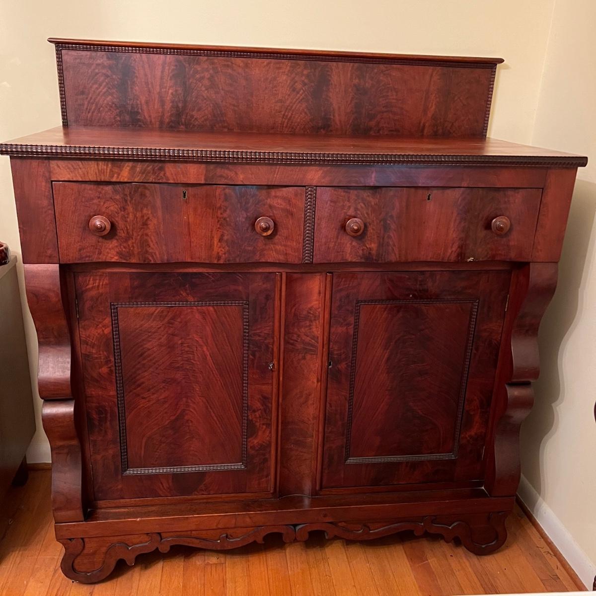 Antique Mahogany Wood Credenza Sideboard w Key