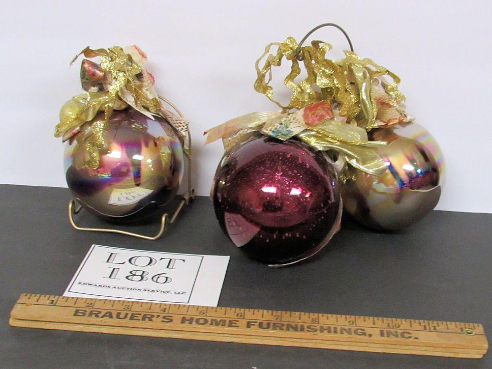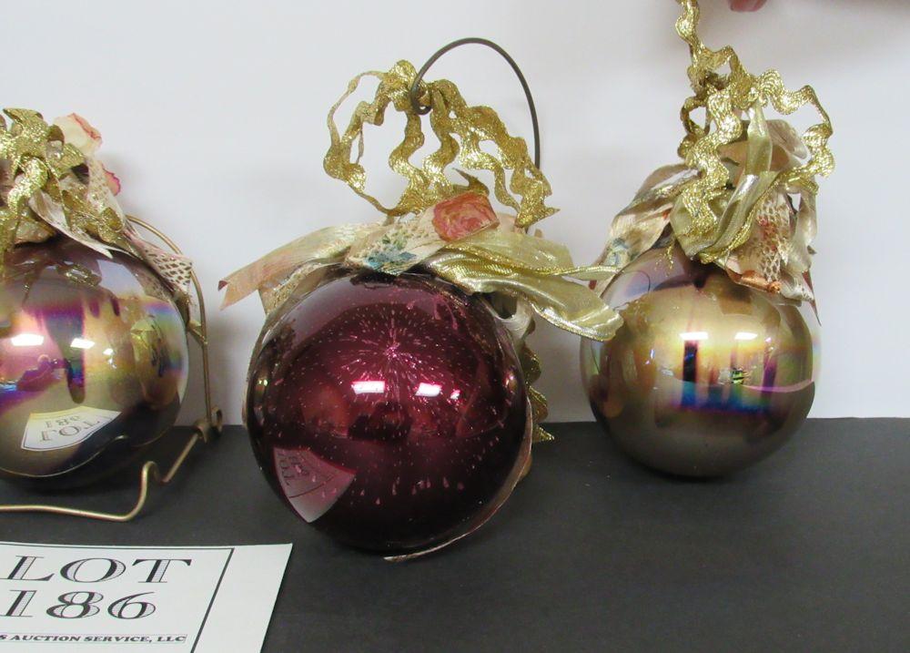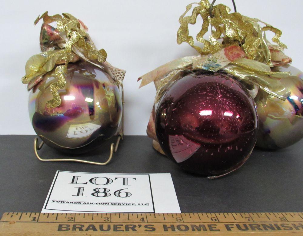 Neat Large Fancy Glass Ball Christmas Ornaments With Fabric Ribbon
