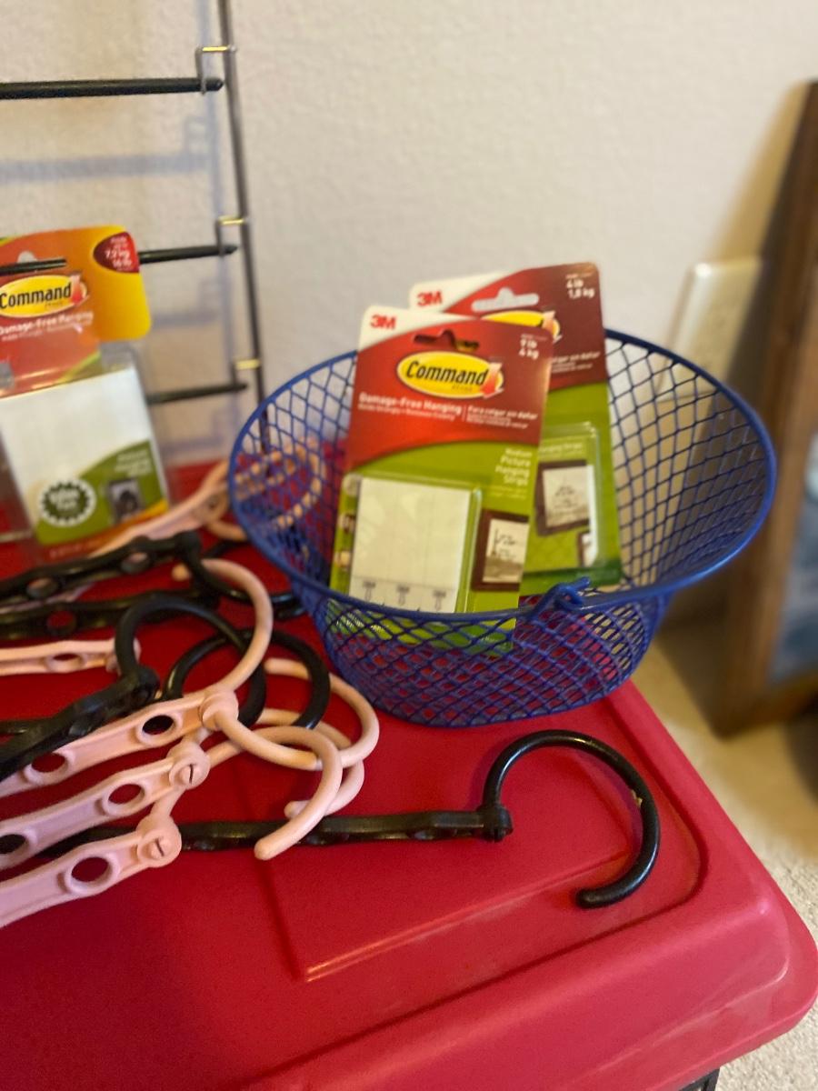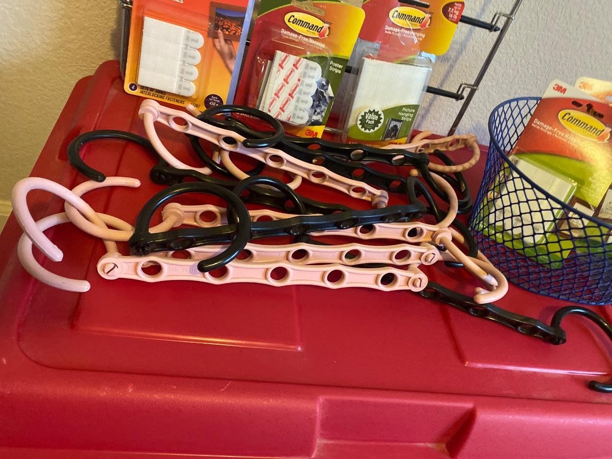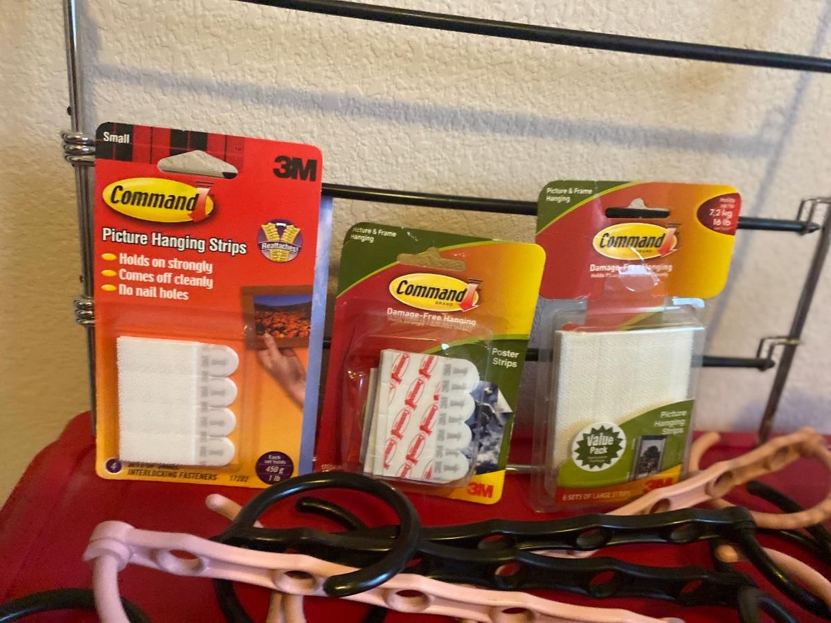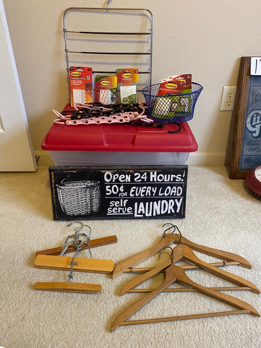 LAUNDRY PICTURE, A VARIETY OF HANGERS, TOTE AND COMMAND STICKIES