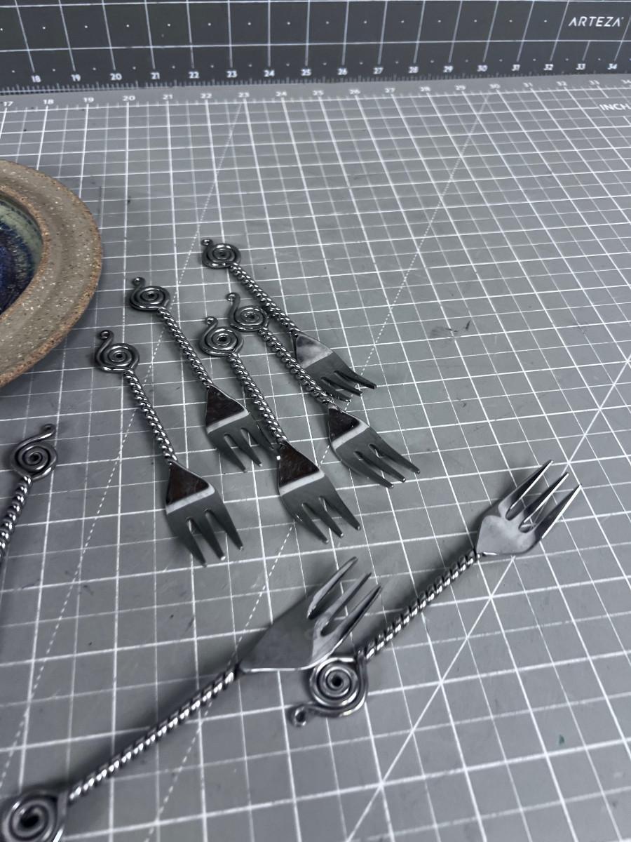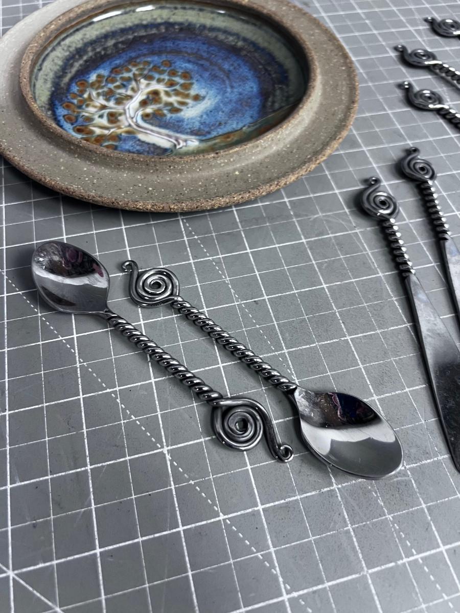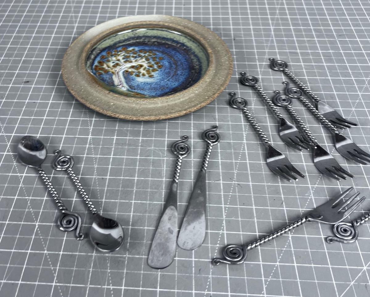 Neat little Forks, Spoons and Knives with Tree of Life Plate