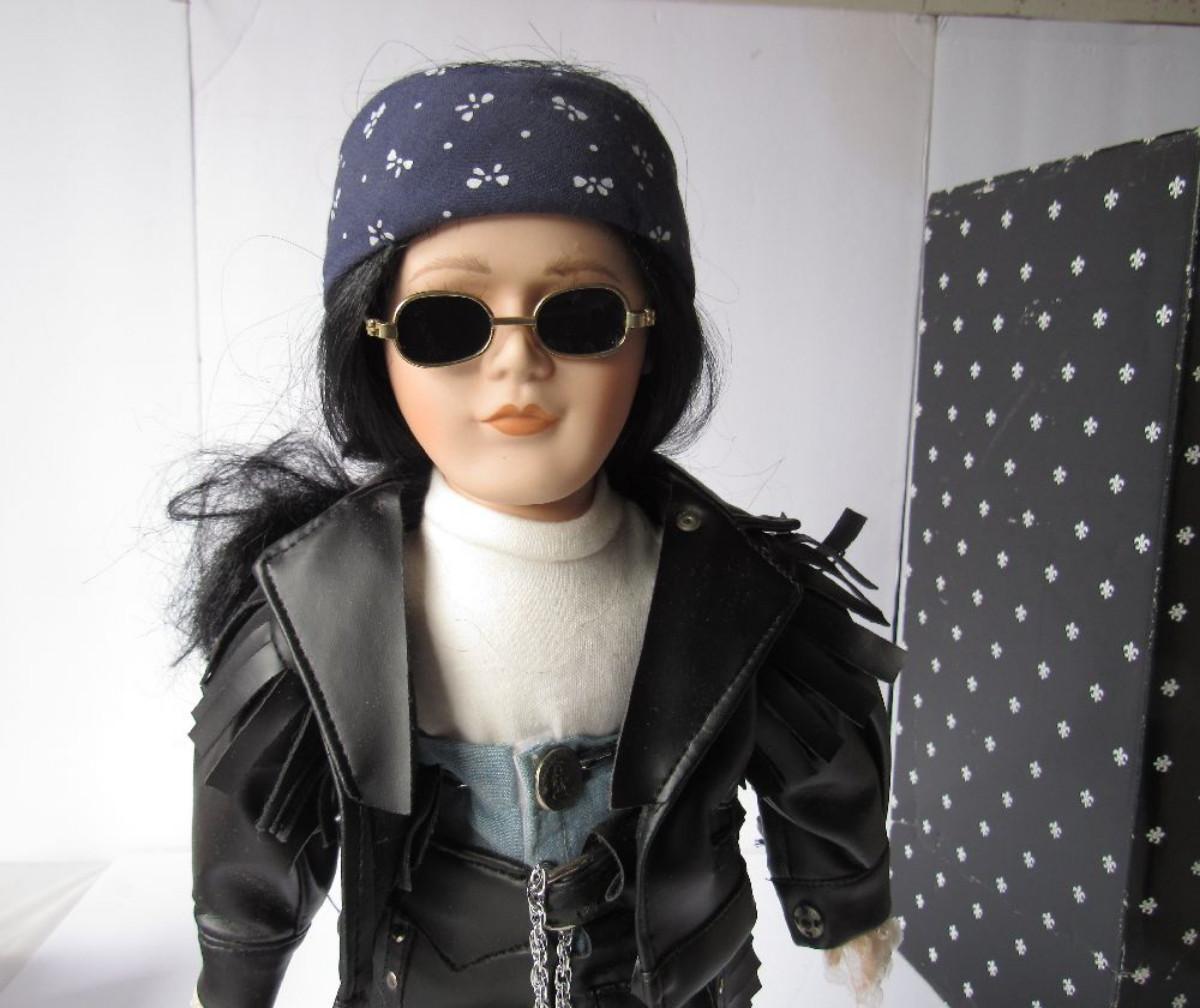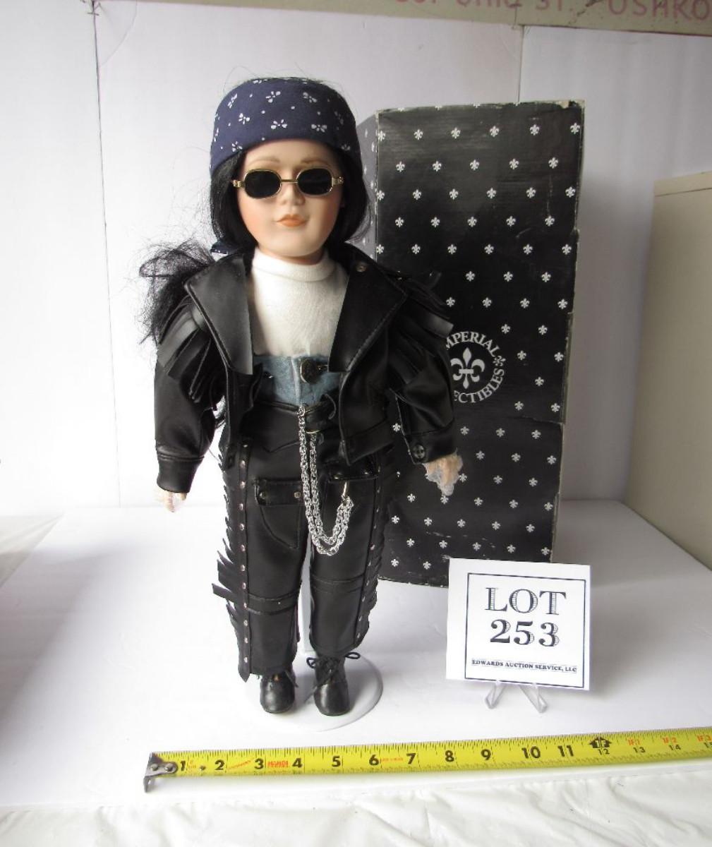 Porcelain Face Biker Girl Doll, 17" Tall, With Stand, Imperial Collectibles, #281/5000