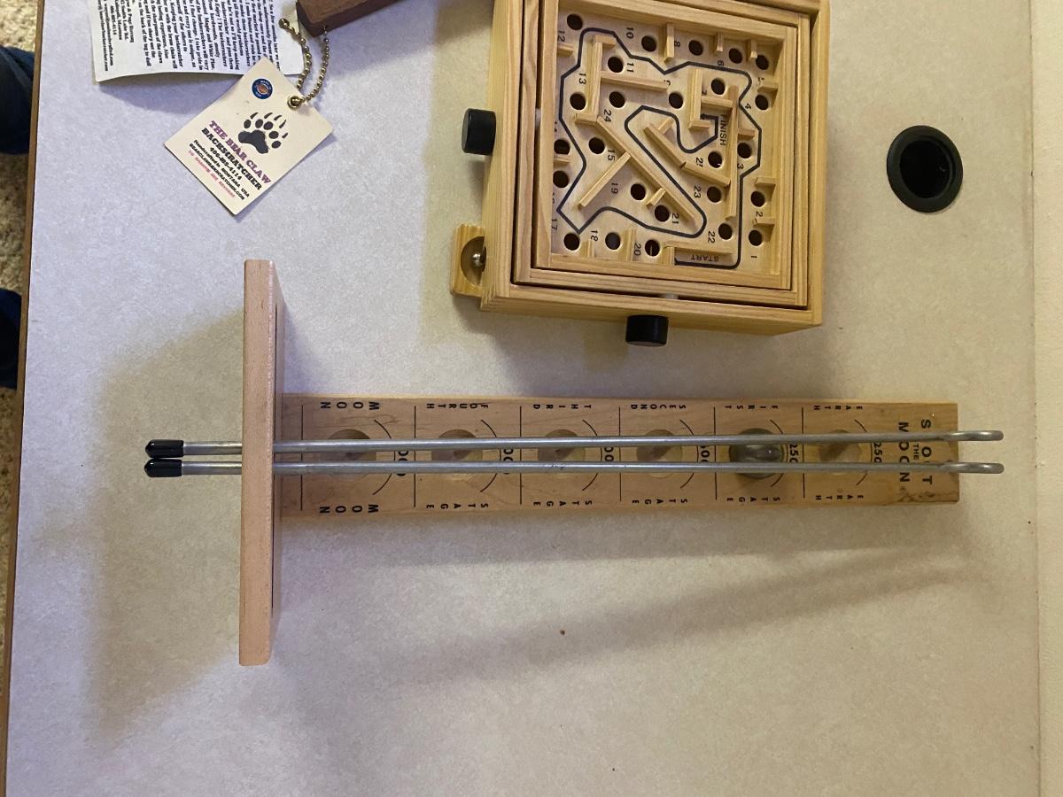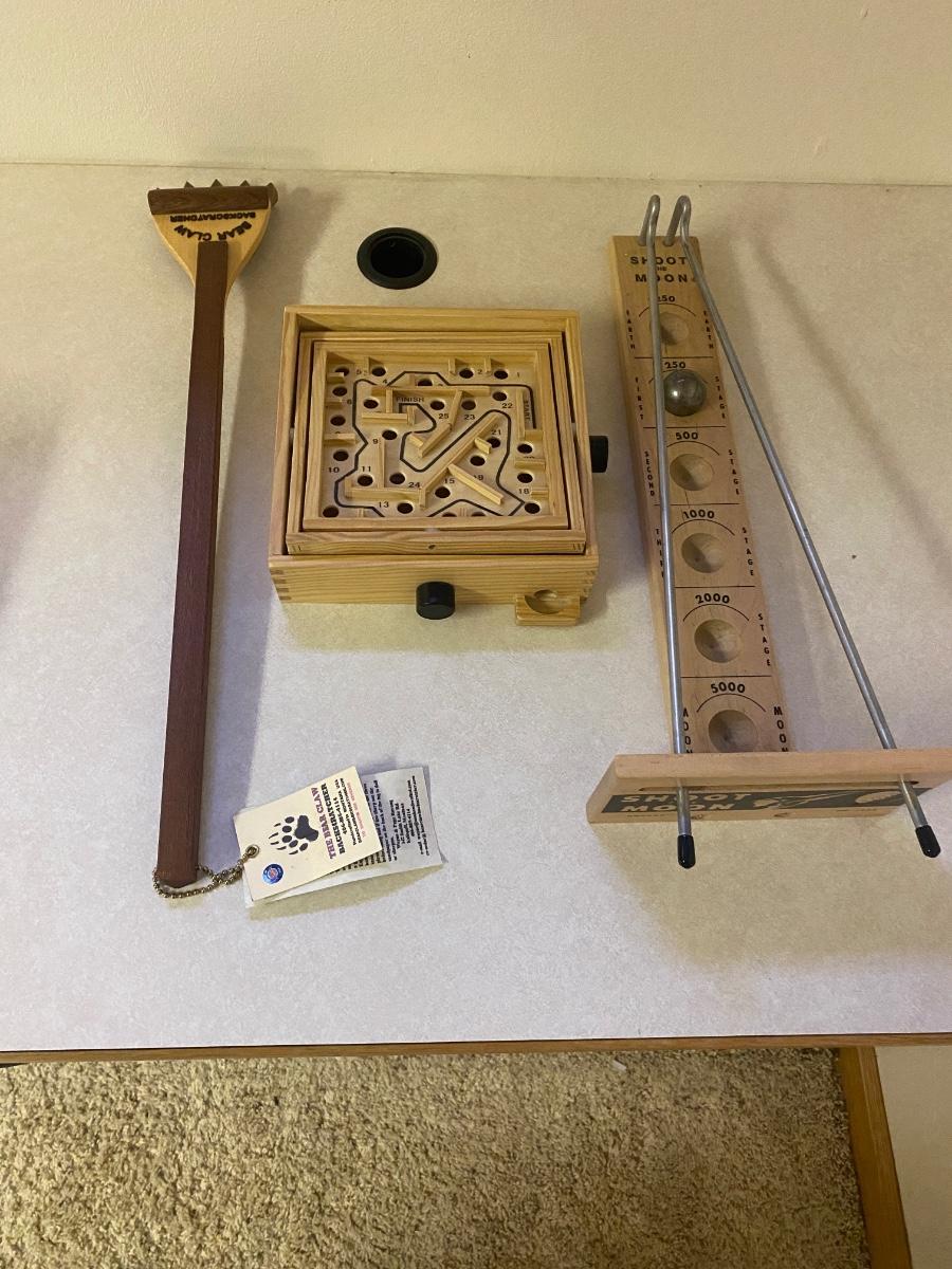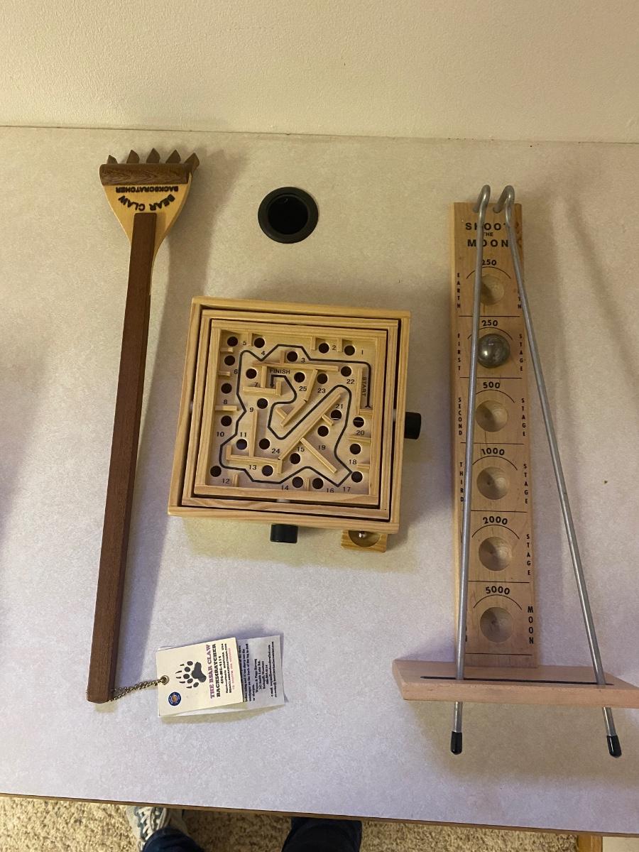 WOODEN GAMES AND BEAR CLAW BACK SCRATCHER