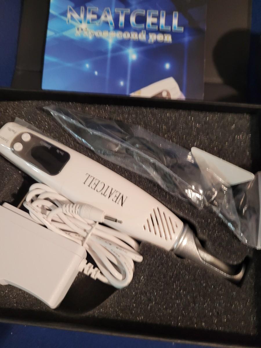 Neatcell blue picosecond pen with 2 pr extra goggles. This did lighten my tattoo, but it is a lot of treatments.