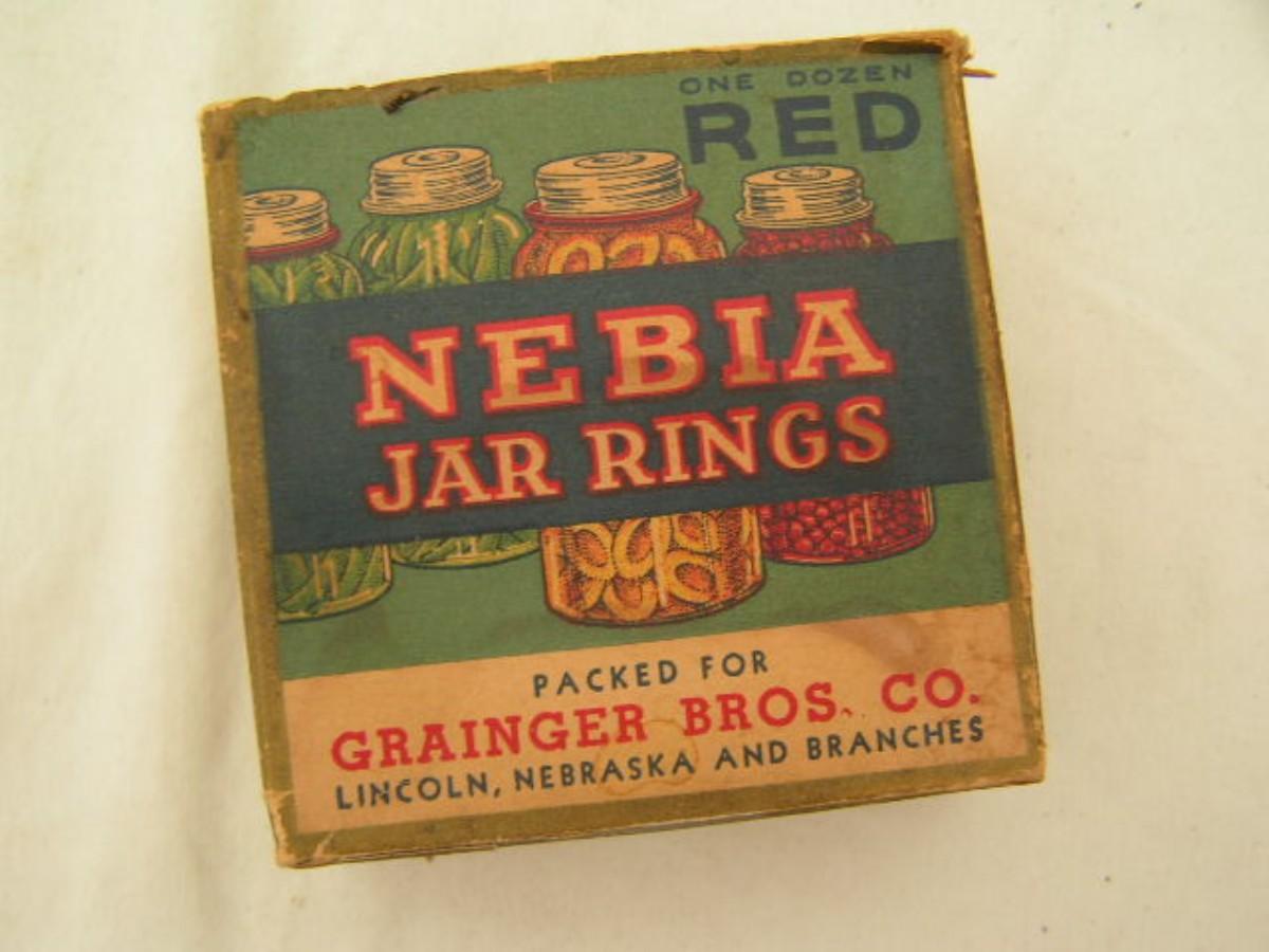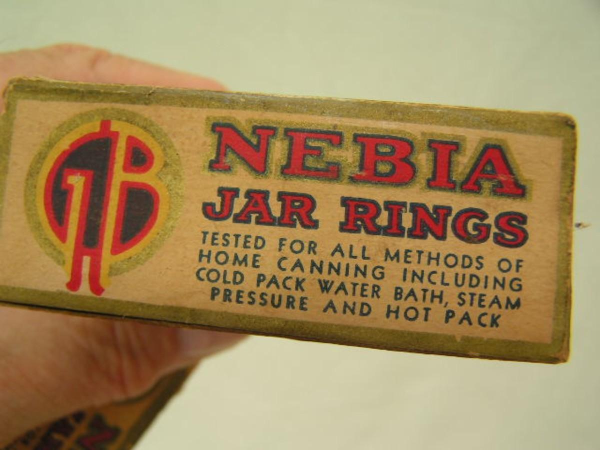 NEBIA jar rings. Vintage or antique? Red rubber lid seal rings for glass lid canning jars. 9 apparently unused rings in two sizes/styles. Still soft and pliable. From Grainger Bros. Co. RARE FIND!