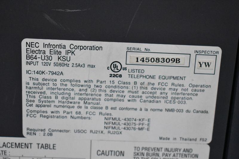 NEC Electra Elite IPK Phone System B64-U30 KSU and More - Untested Parts Only