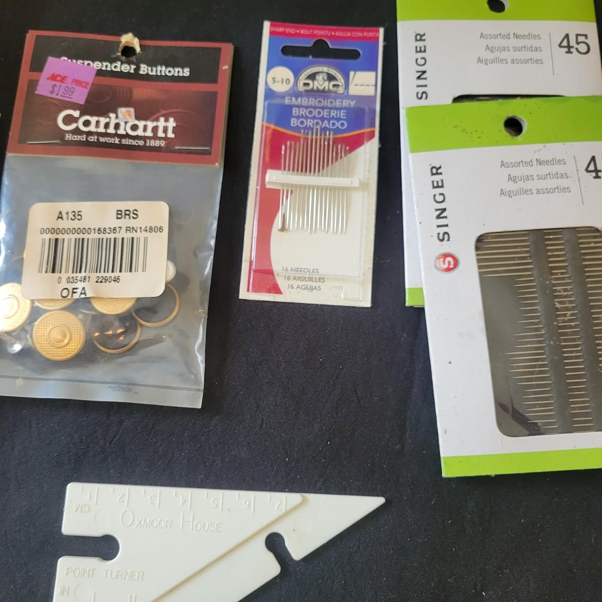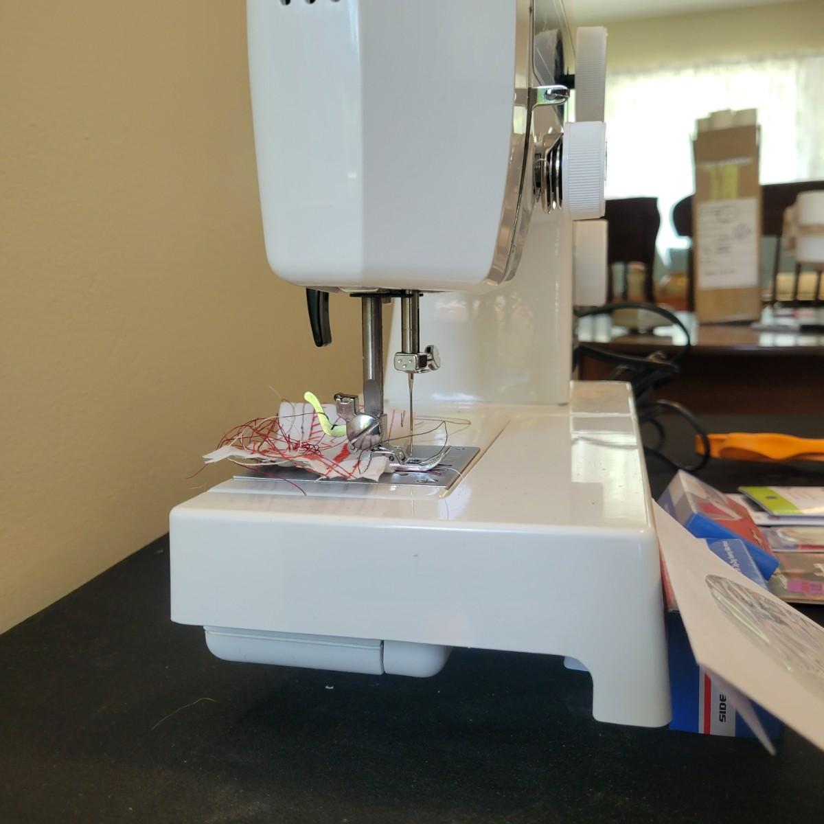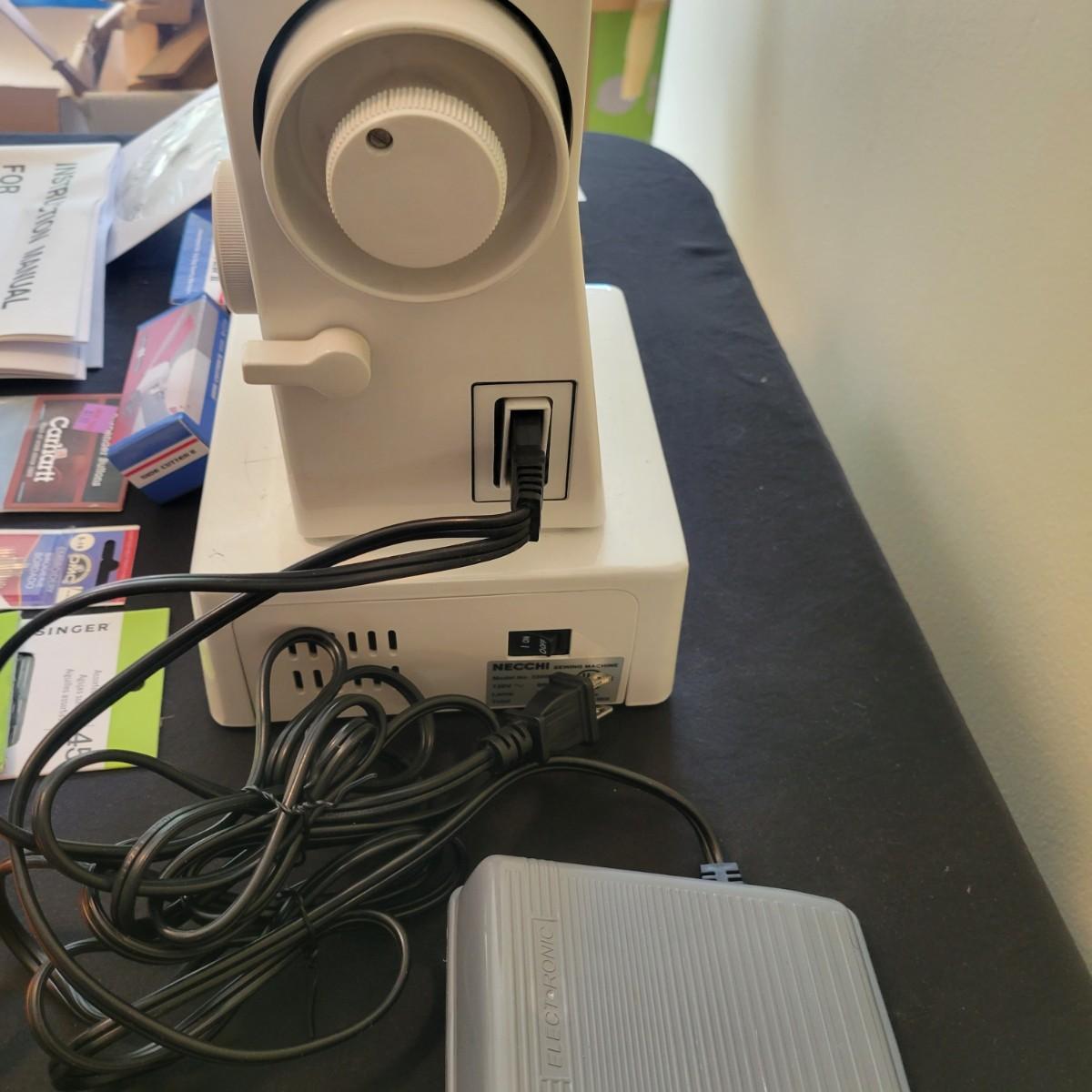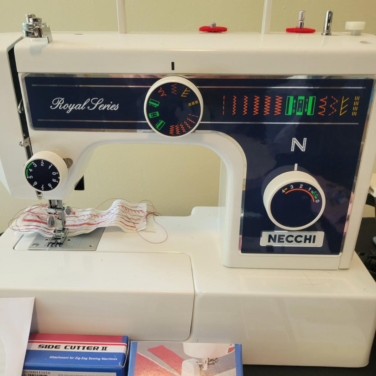 Necchi heavy duty sewing machine, model #3205GA, used but in original box with instruction manual and instructional DVD. Sewing machine was plugged in and works. Includes 2 side cutter II attachments, Carhartt buttons, needles, and scissors. Shipping Available.