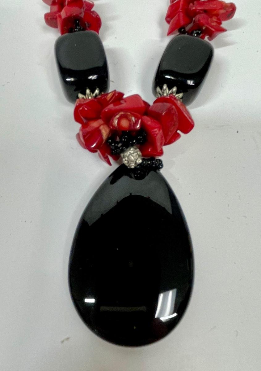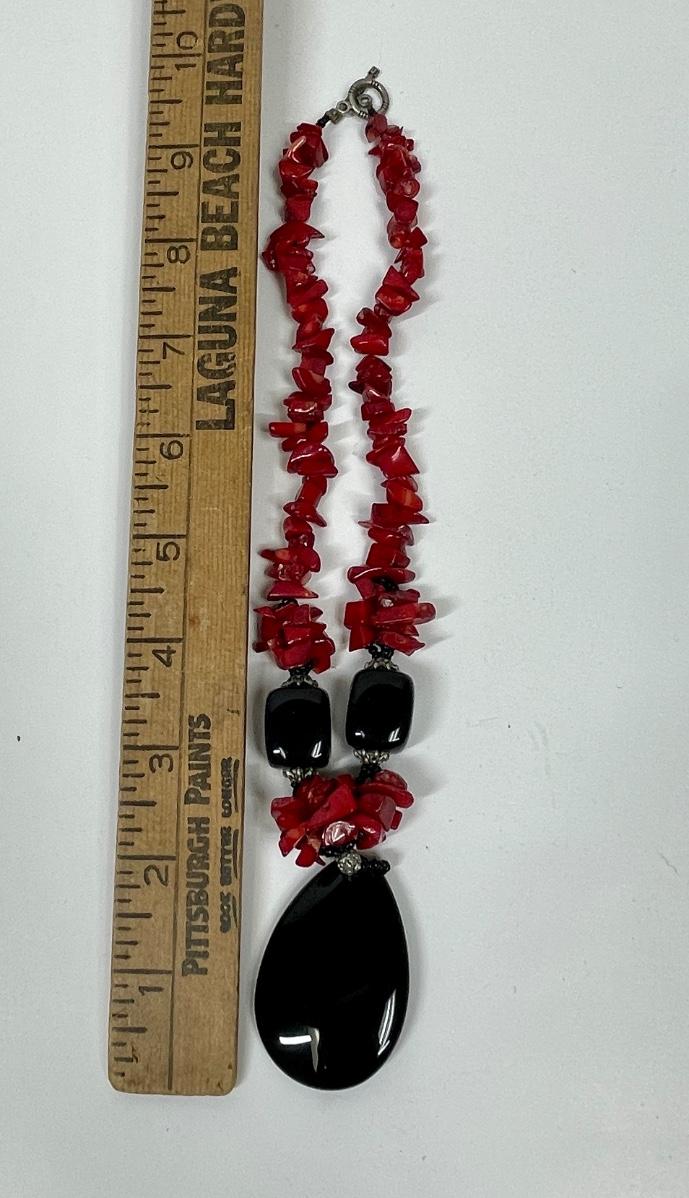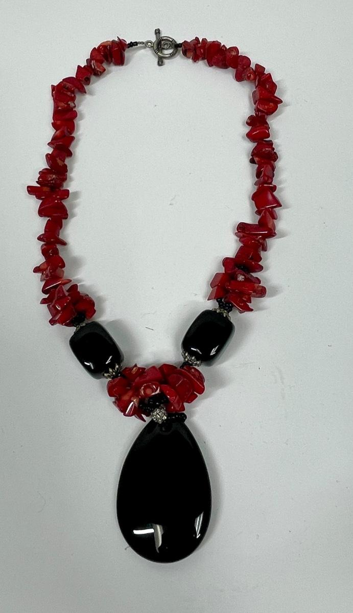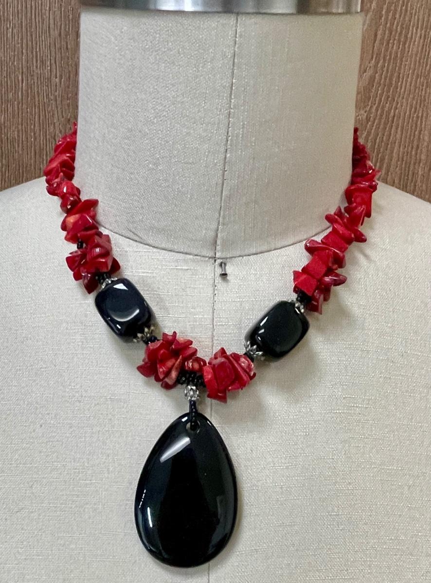 Red & Black Stone Pendant Necklace