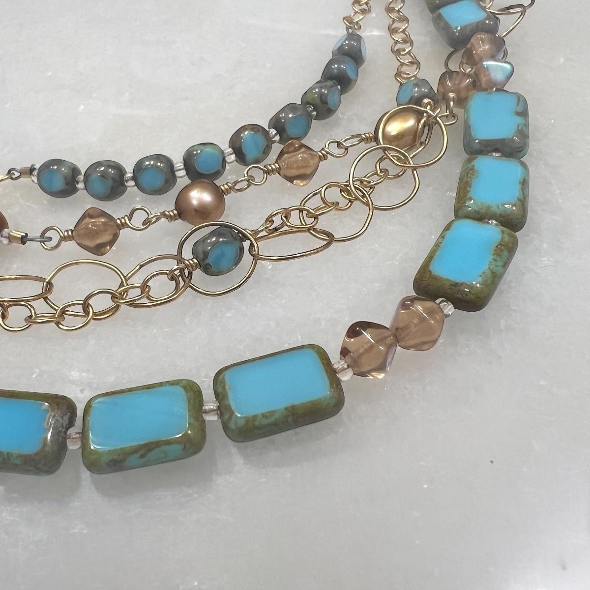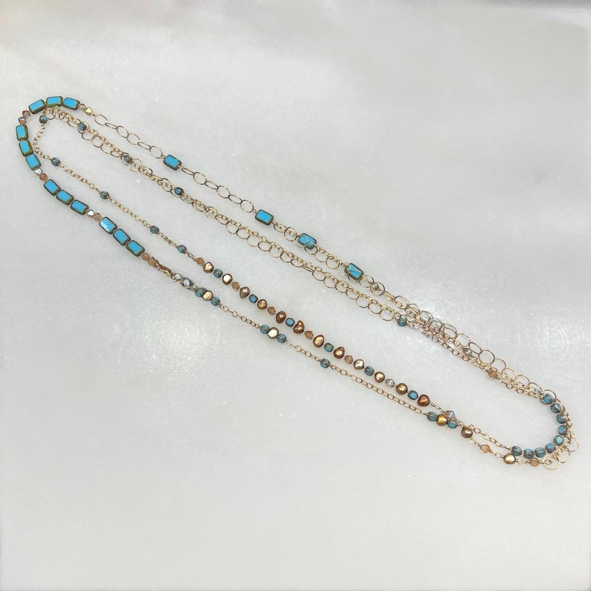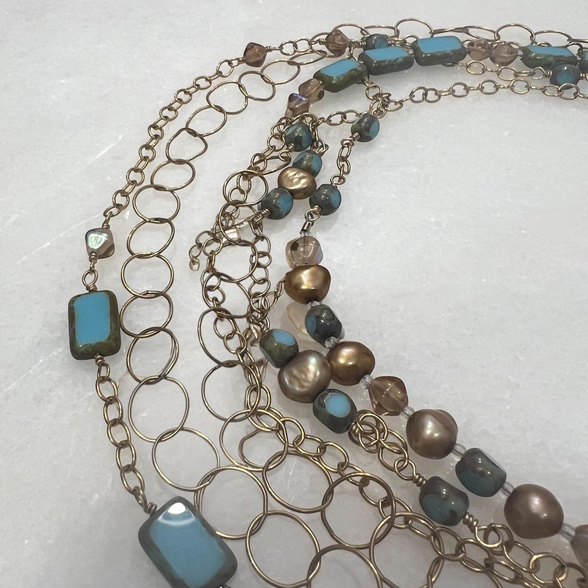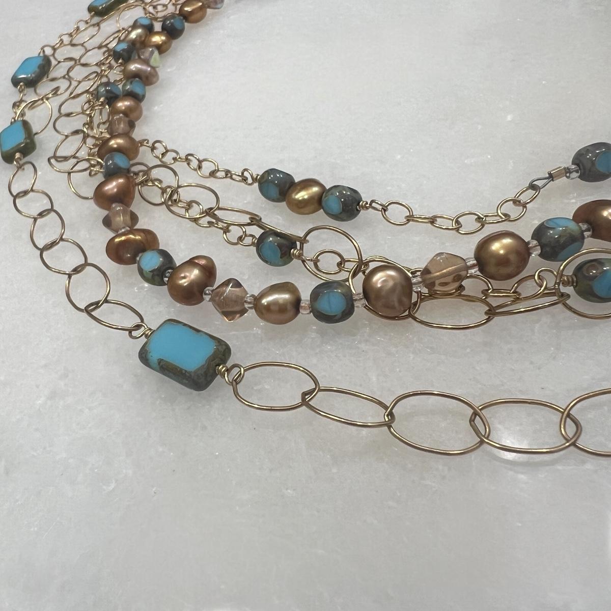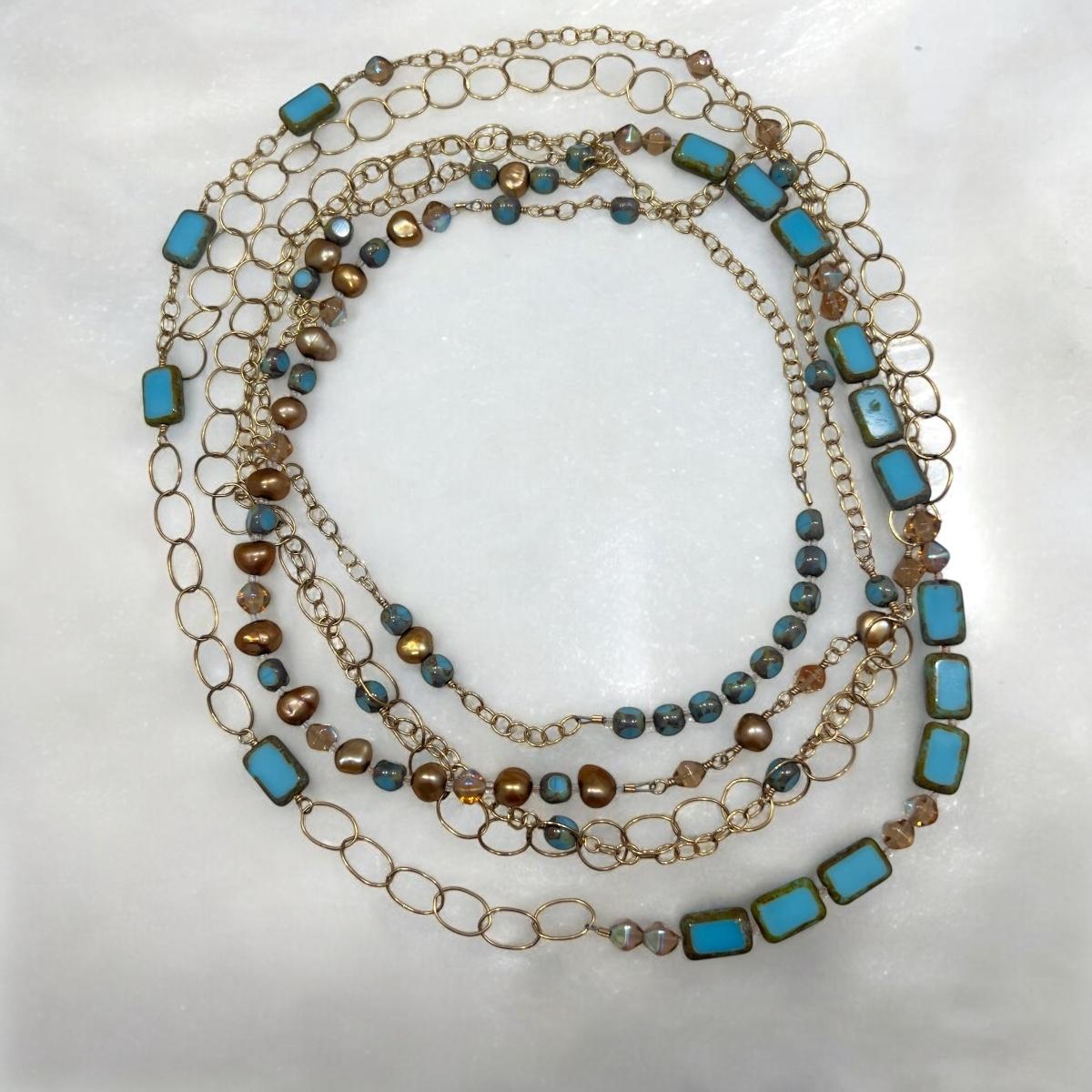 Stephanie Wolf Medley Necklace 70" - Freshwater Pearls, Glass Tiles, Crystals