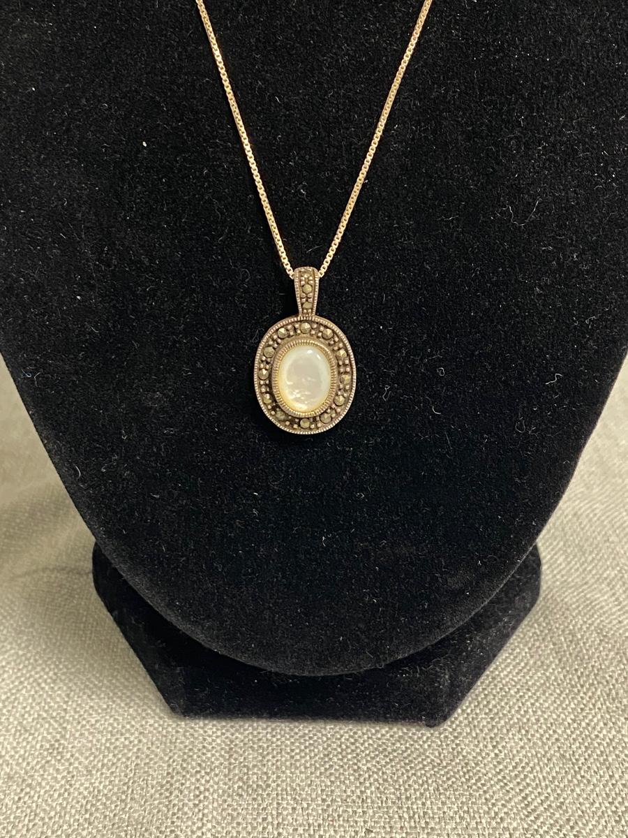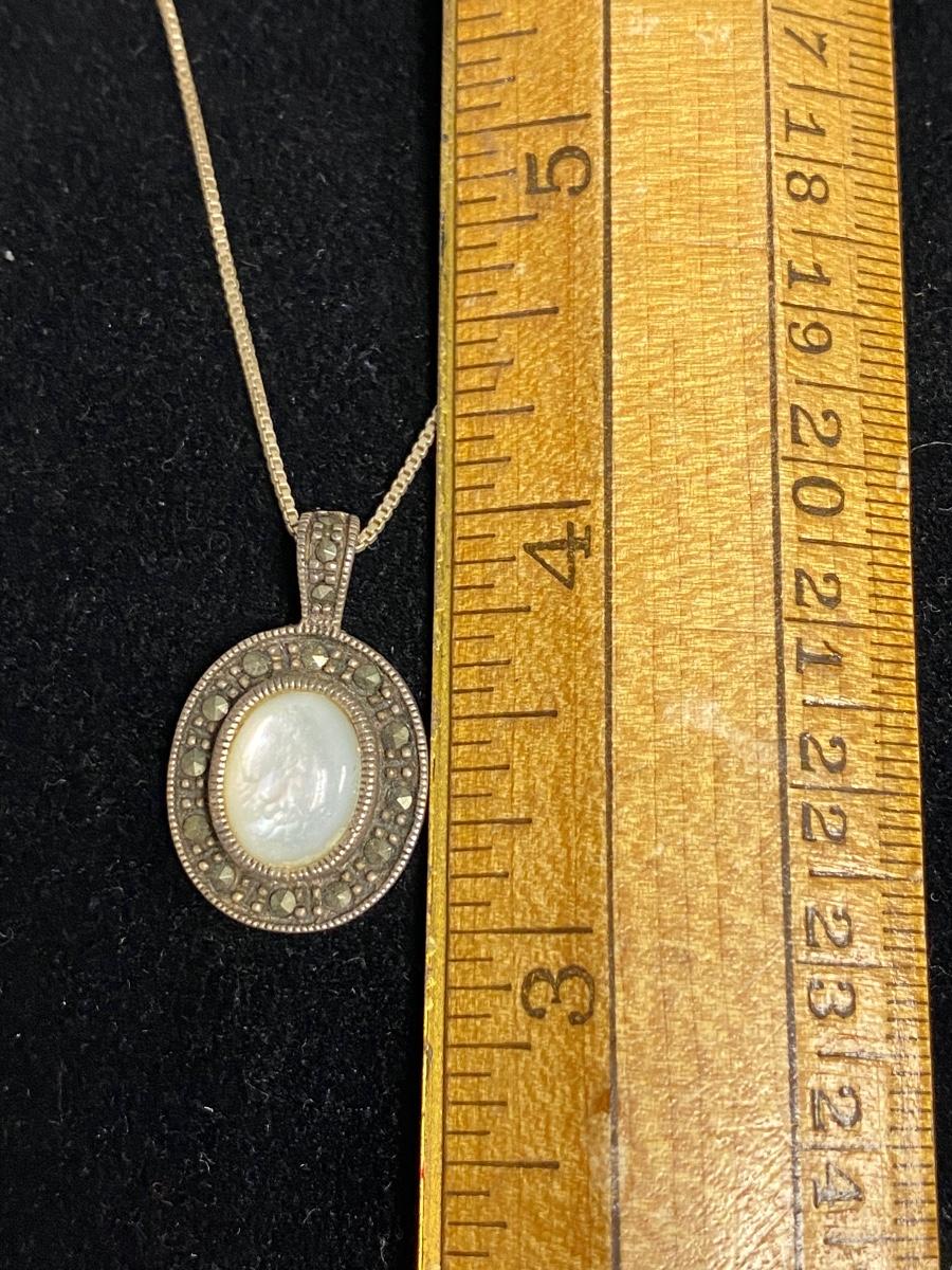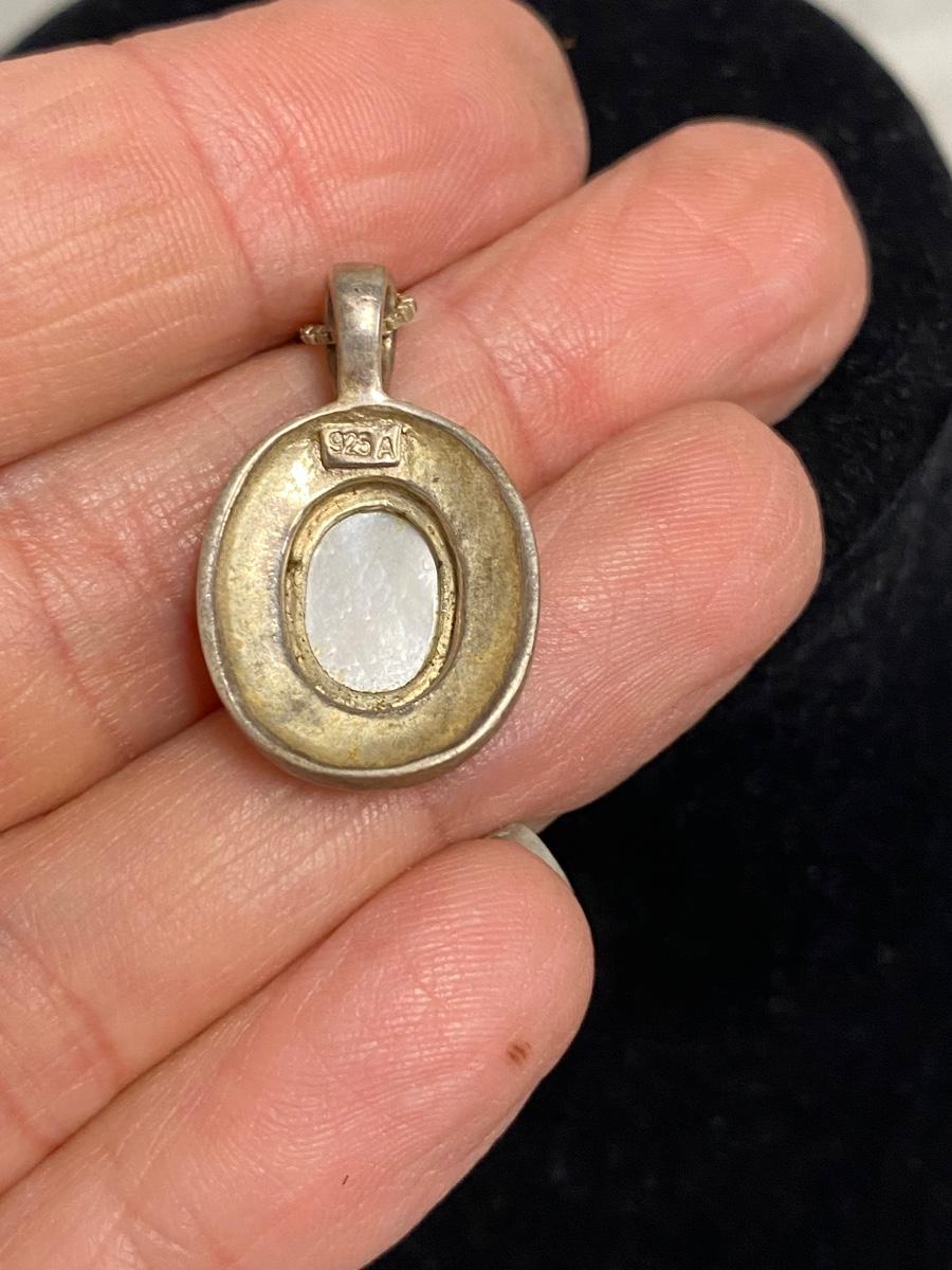 Sterling silver and mother of pearl pendant necklace. 925 stamped on the back. Needs to be cleaned.