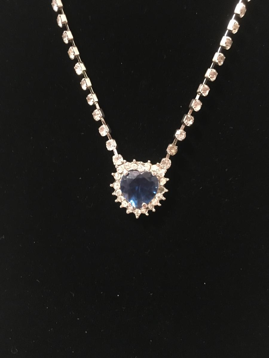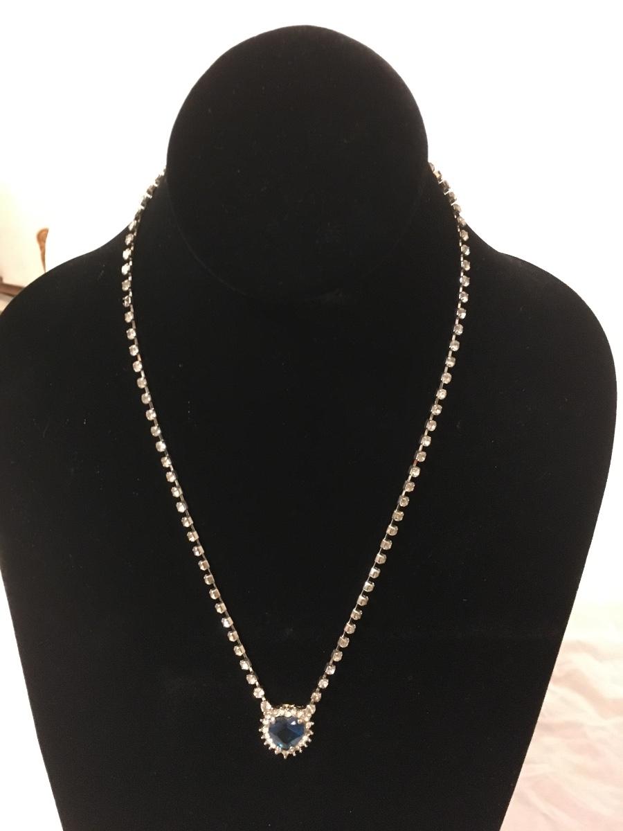 Nice costume necklace with nice blue pendant Missing a stone please see attached photos