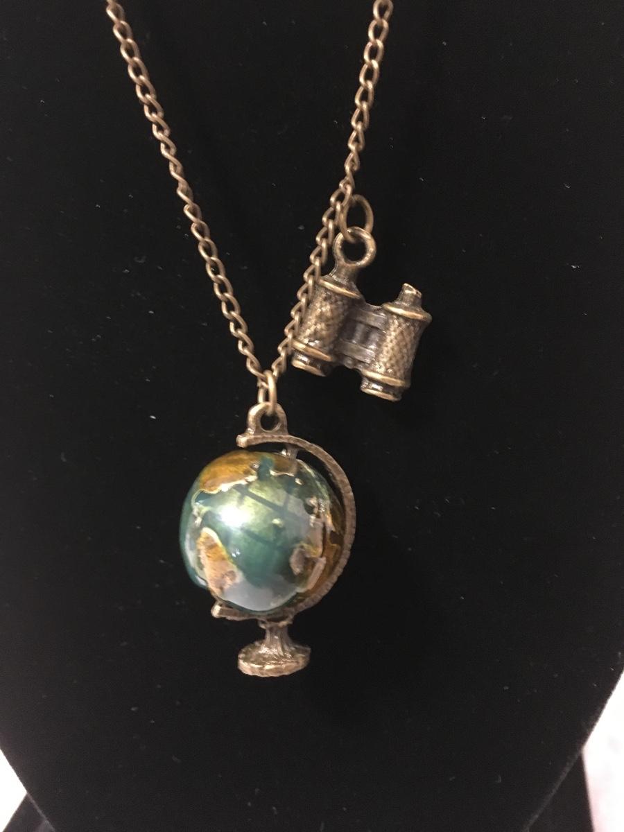 Nice costume necklace with globe and binoculars pendant Please see attached photos