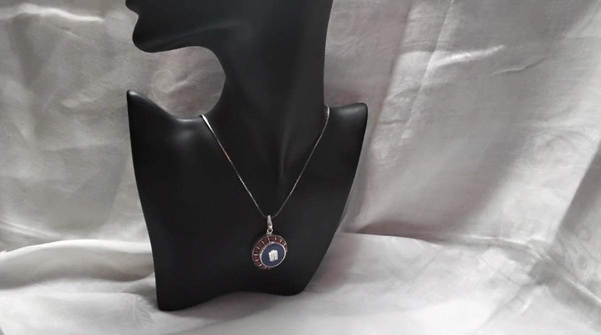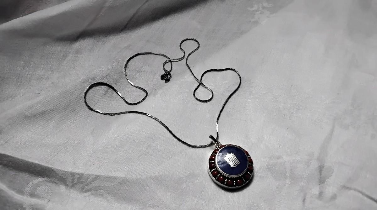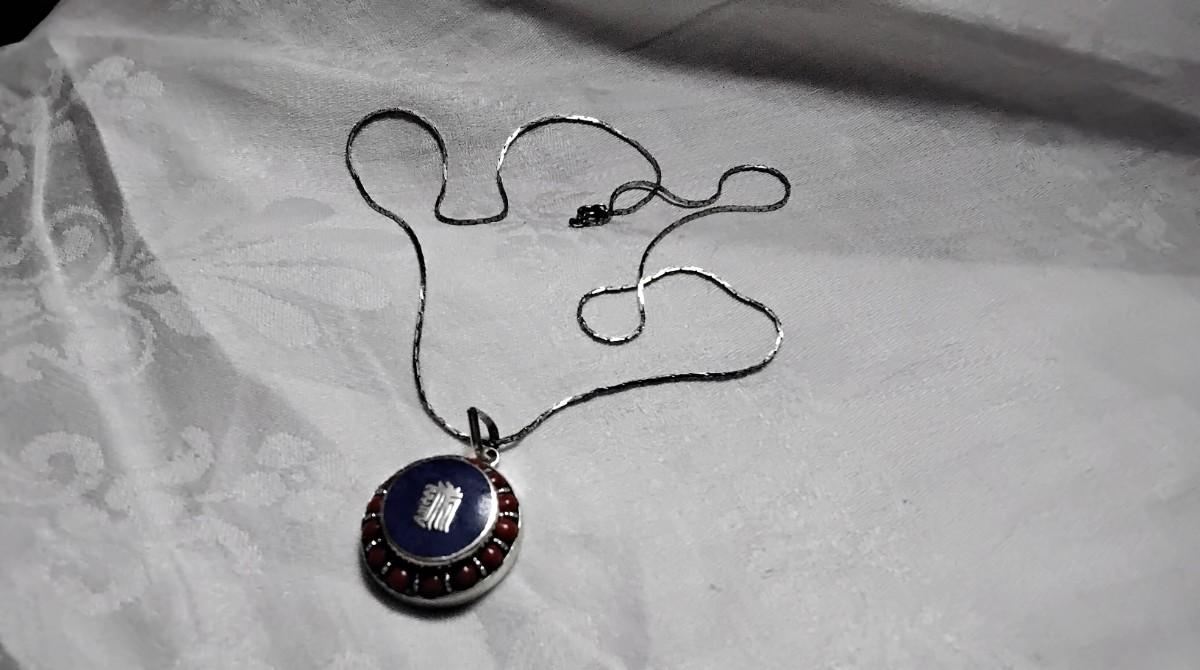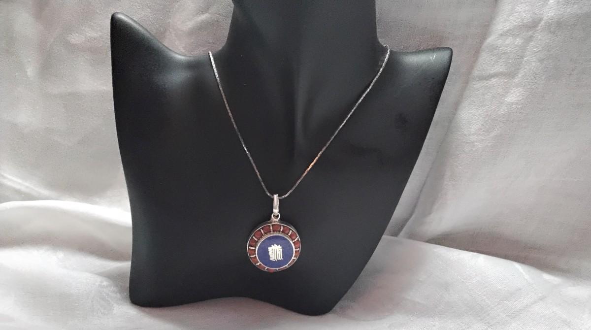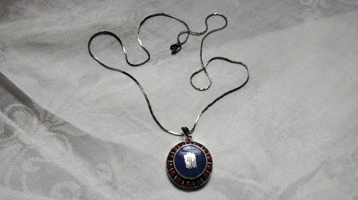 Unique New Old Stock Asian Lapis Lazuli And Red Coral Medallion 925 22" Necklace
