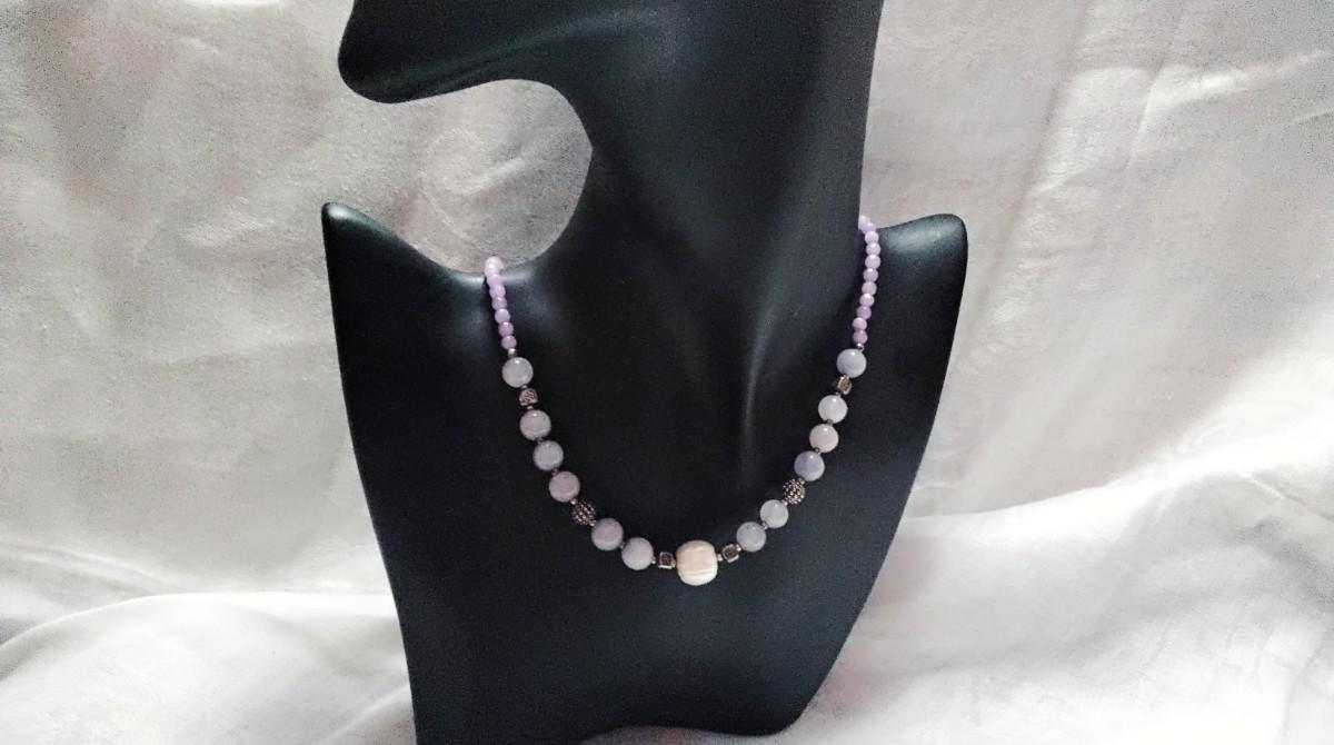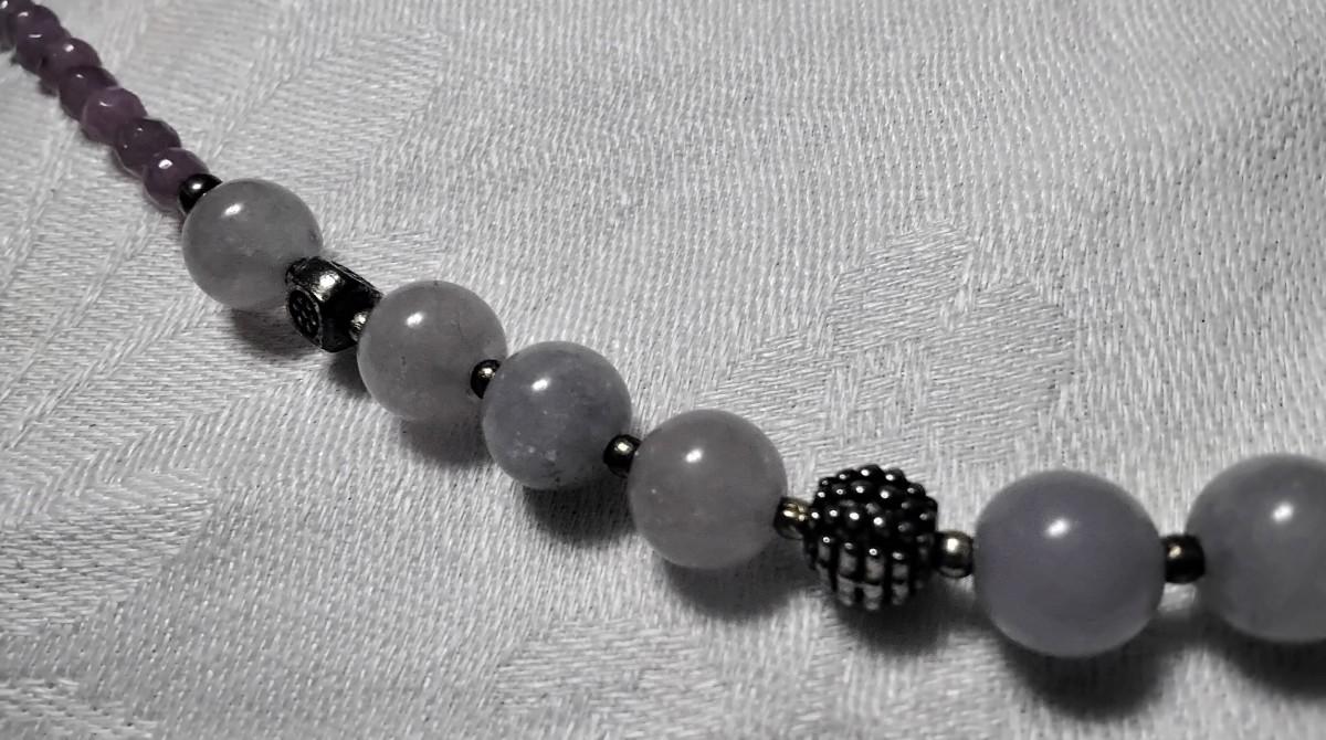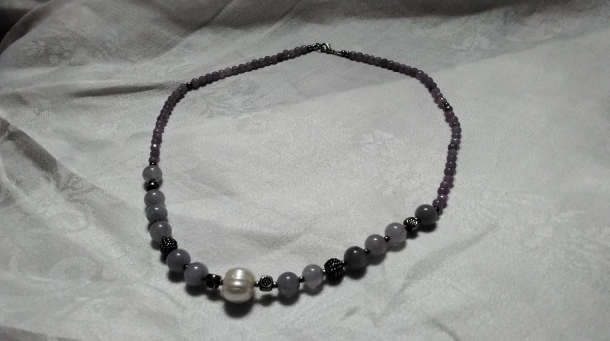 Exquisite Lavender Jade, Hematite, Amethyst 925 Beads With A Stunning Baroque Pearl  18" Necklace