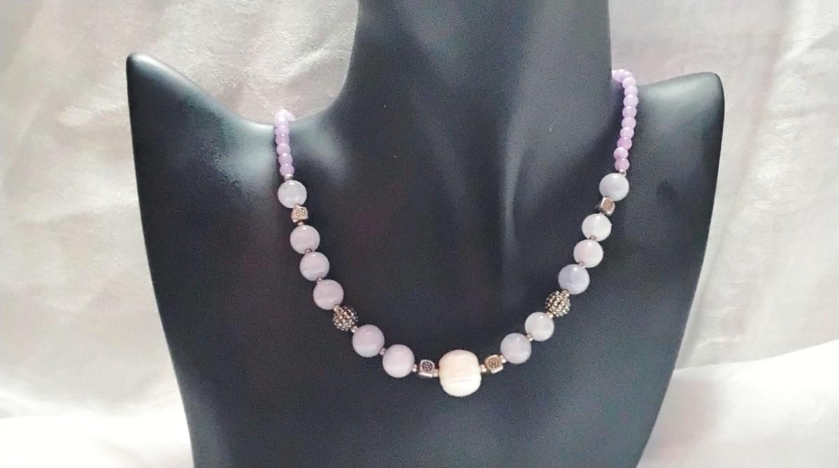 Exquisite Lavender Jade, Hematite, Amethyst 925 Beads With A Stunning Baroque Pearl 18" Necklace